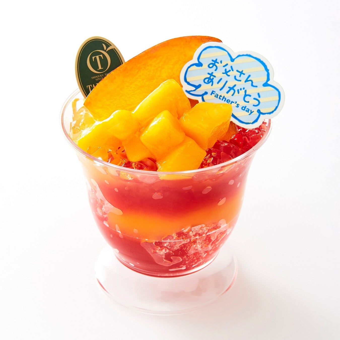 カシスベリーとパッションマンゴージュレを層に。宮崎マンゴーをトッピングした涼やかなトライフルです。