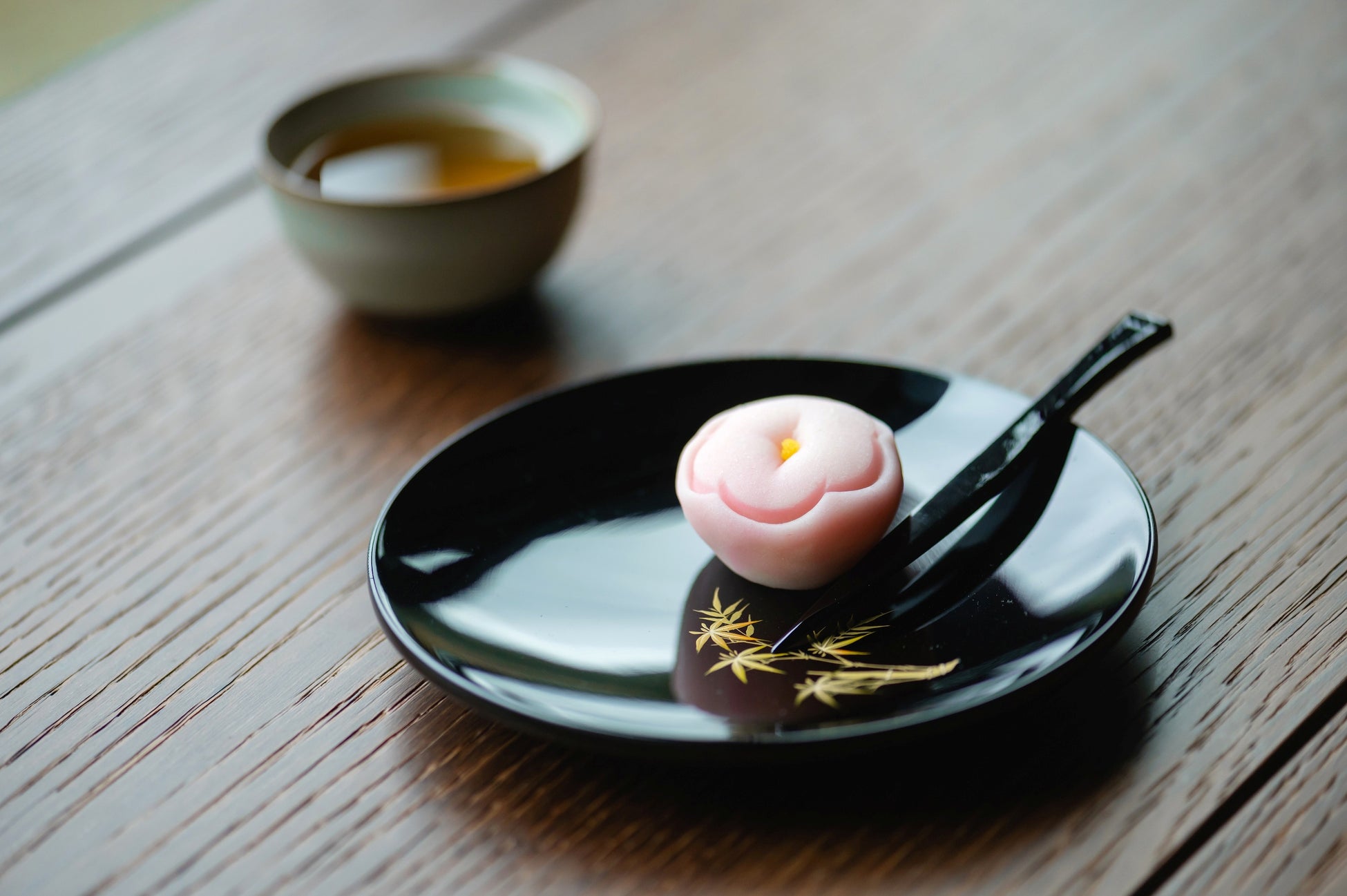 チェックインの際、蒔絵が施された漆器に盛られた和菓子を味わいながら、漆器の美しさを楽しみます。客室には漆芸に関する本を備えており、滞在中に自由に読むことができます。本を通して漆器の歴史や技法、美しさを知ることができ、漆の特徴や蒔絵の模様への理解を深める助けとなる内容です。これにより、翌日の体験に必要な基礎知識を身につけたうえで参加できます。