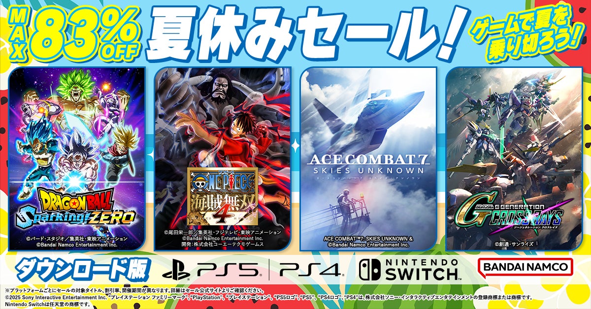 株式会社バンダイナムコエンターテインメントは、ダウンロード版ゲームをお得に購入可能な夏休みセールの開催をお知らせいたします。『ACE COMBAT™7: SKIES UNKNOWN』や『SDガンダム ジージェネレーション クロスレイズ』など、人気タイトルがセールラインナップに登場。