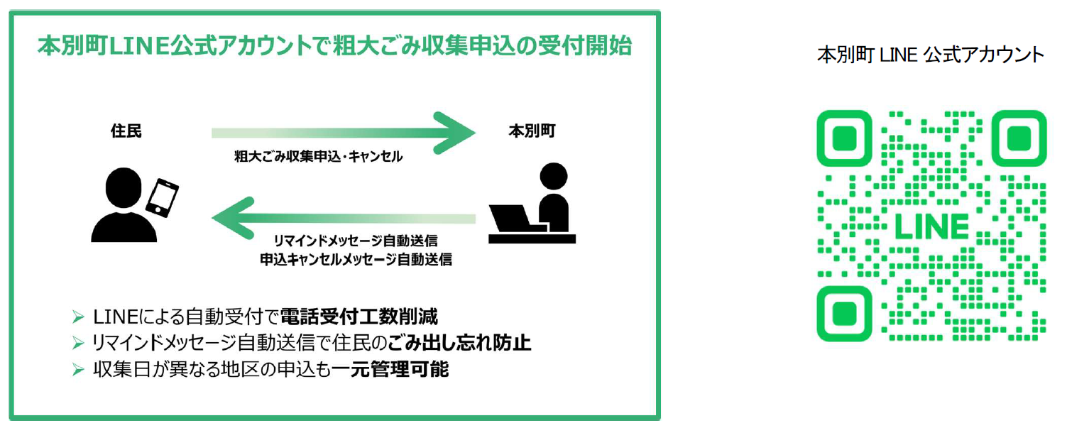 北海道本別町に「LINEを活用した粗大ごみ収集の申込受付ツール」を提供開始