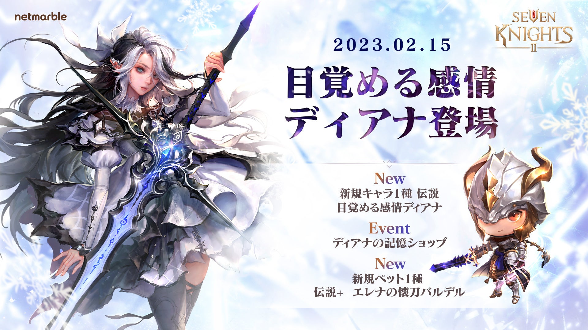 ネットマーブルは、スマートフォンやタブレット向けにサービス提供しているキャラクターコレクションシネマティックRPG『セブンナイツ2』(開発:Netmarble Nexus)において、本日2月15日(水)に、新しい伝説英雄「目覚める感情 ディアナ」を追加するゲームのアップデートを実施いたしました。