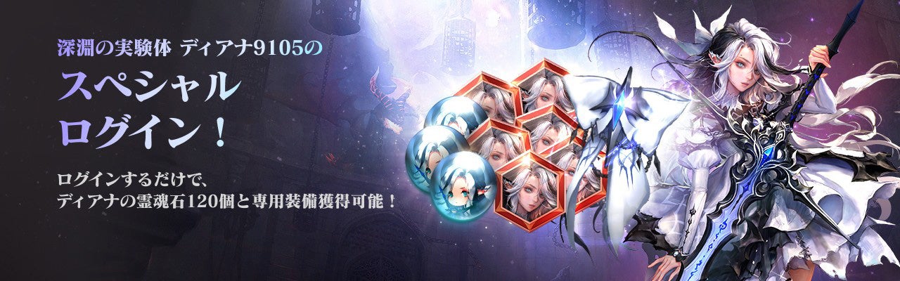 新規英雄「目覚める感情 ディアナ」の参戦を記念して、3月2日(木)メンテナンス前までのイベント期間中にゲームにログインするだけでディアナを獲得できるイベントを開催いたします。10日間連続でゲームにログインした方は、ディアナの専用装備を受け取ることができます。