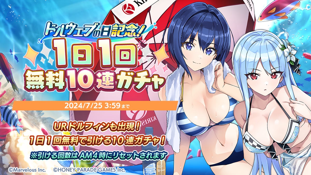 ※「1日1回無料10連ガチャキャンペーン」は専用ガチャが対象となります。「ドルフィンフェスガチャ」などは対象外となります。