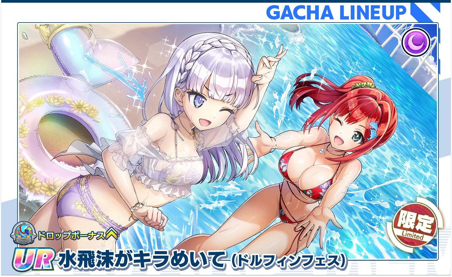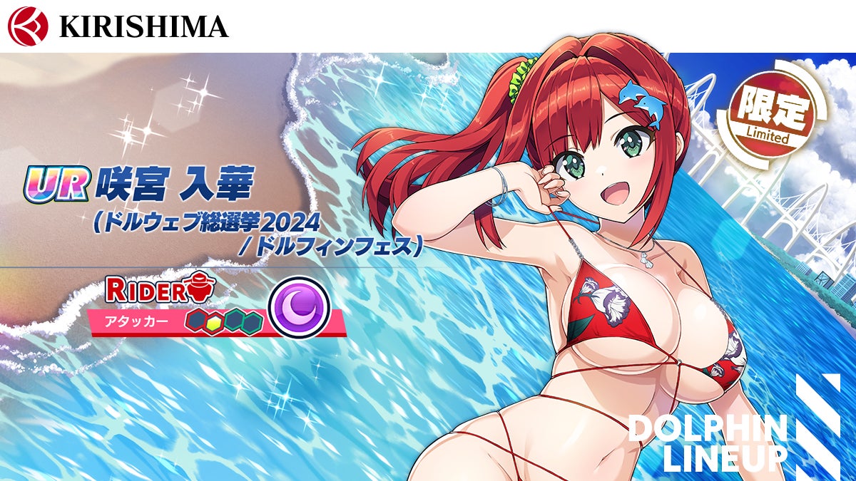 7/15(月)より「ドルフィンフェス」を開催いたします!今回のガチャでは、限定ドルフィンの「UR咲宮入華(ドルウェブ総選挙2024/ドルフィンフェス)」と「UR シュネー・ヴァイスベルグ(ドルウェブ総選挙 2024/ドルフィンフェス)」、そしてLive2Dで動くURメモリーが新登場!