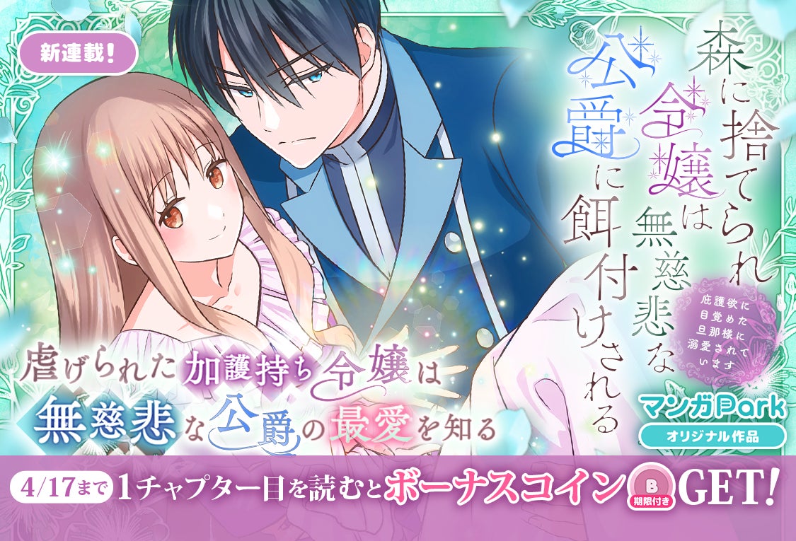 マンガParkでは「森に捨てられ令嬢は無慈悲な公爵に餌付けされる 庇護欲に目覚めた旦那様に溺愛されています」の新連載を記念して、読書チャレンジキャンペーンを実施いたします。期間限定&読めば必ずコインがもらえるBIGチャンス!