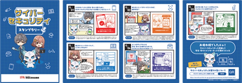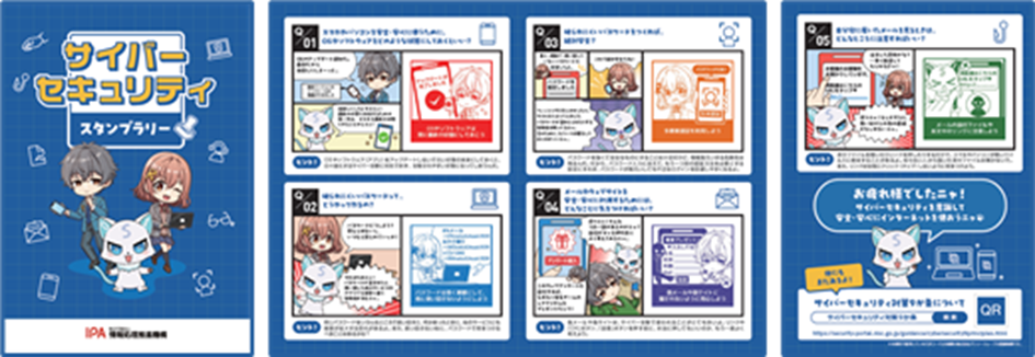 「サイバーセキュリティ啓発スタンプ」は、IPAのサイバーセキュリティ啓発活動の一環として制作し、小中高生が、特に低学年でもスタンプラリー等を通じてサイバーセキュリティの重要性を学び、関心を高めることを目的としたスタンプです。全国様々な団体のサイバーセキュリティに関する取組・イベント等で活用頂けるよう、IPAが適宜貸し出しています。(2024年8月現在)