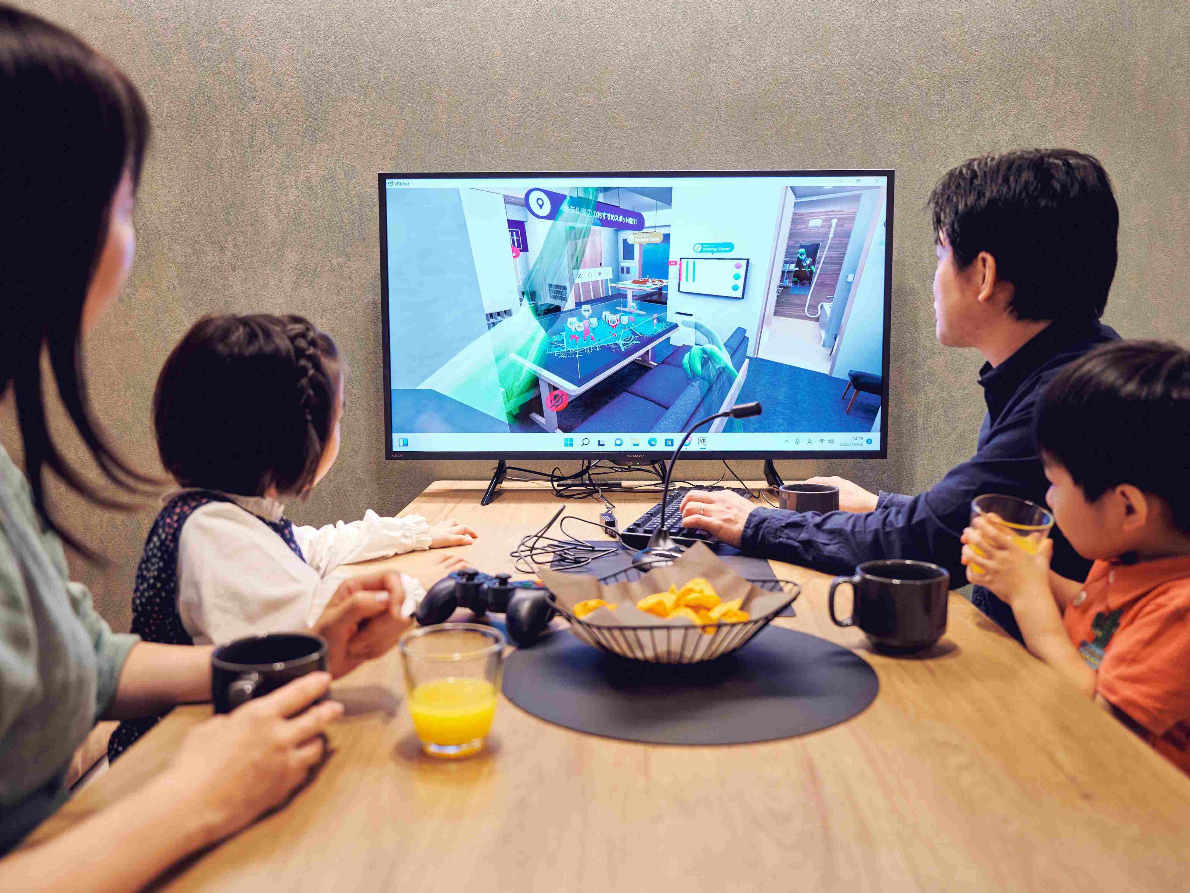 客室内のPCからは、もう一つのバーチャルな部屋「メタバースルーム」にアクセスできます。ゲストは、アバターを使ってVRChatに参加し、音声チャットを使って交流したり、マップで街の情報を得たり、宝探しゲームを楽しむことができます。また、デジタル掲示板でゲスト同士が街やイベント情報などを共有でき、情報交換をもとに「明日そのお店に行こう!」とリアルな出会いに繋がります。