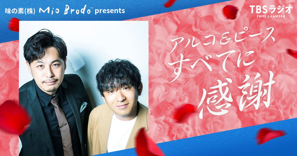森羅万象すべてに感謝するアルコ&ピースの二人が、普段の感謝を照れずに伝えることの大切さをリスナーに届ける60分。味の素(株)の新商品「Mio Brodo™」の提供でお届けします。