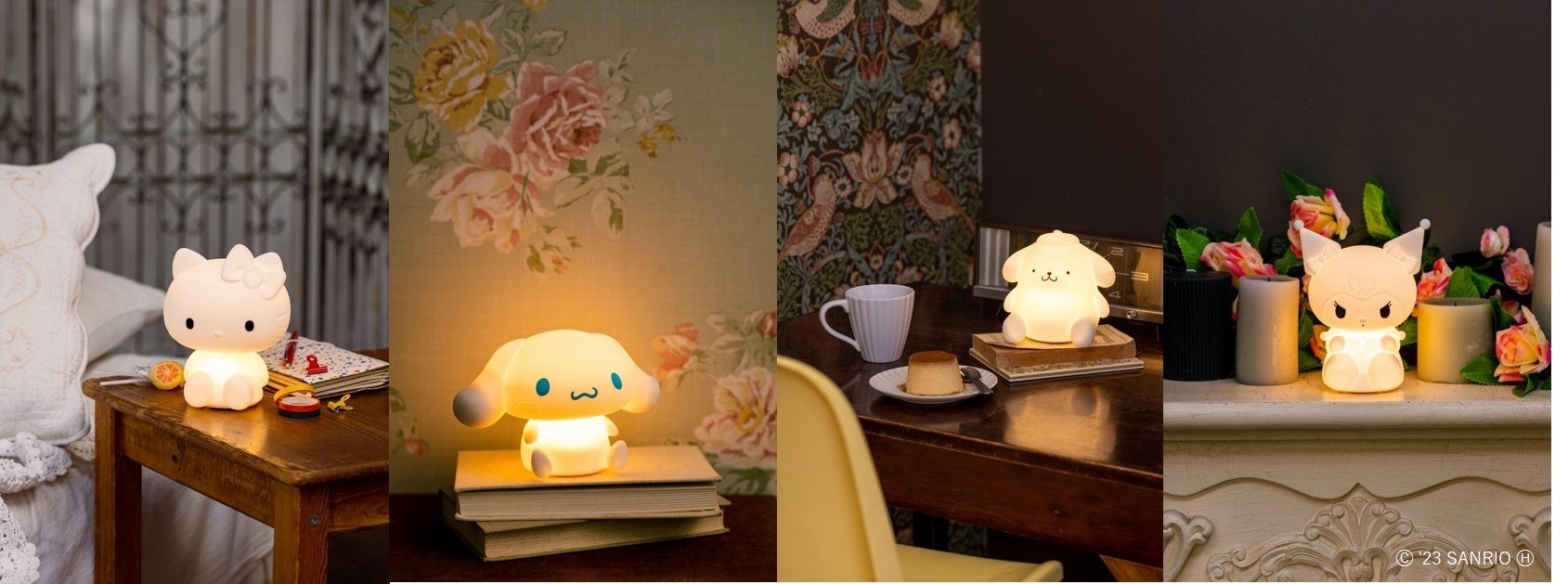 株式会社サンリオのキャラクターのお部屋ライト『ハローキティ お部屋ライトBOOK special package ver.』『シナモロール お部屋ライトBOOK special package ver.』『ポムポムプリン お部屋ライトBOOK special package ver.』『クロミ お部屋ライトBOOK special package ver.』を2023年4月1日(土)に、セブンネットショッピング、セブン-イレブン限定で同時発売します。