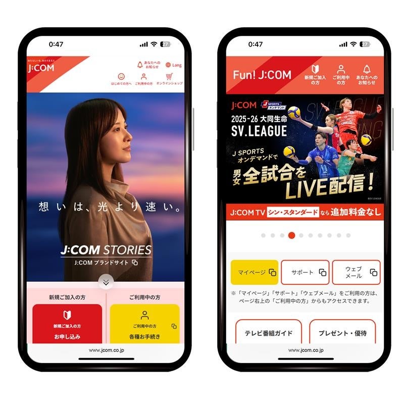 JCOM株式会社(J:COM、本社:東京都千代田区、代表取締役社長:岩木 陽一)のスマートフォンサイトは、2025年12月16日(火)にトライベック株式会社より発表された「スマートフォンサイトユーザビリティランキング2026<企業サイト編>」で3年連続の第1位を獲得しました。これにより、12月9日(火)発表の「Webユーザビリティランキング2026<企業サイト(PC)編>」とあわせて、国内企業として初めて、3年連続で1位を獲得しました。