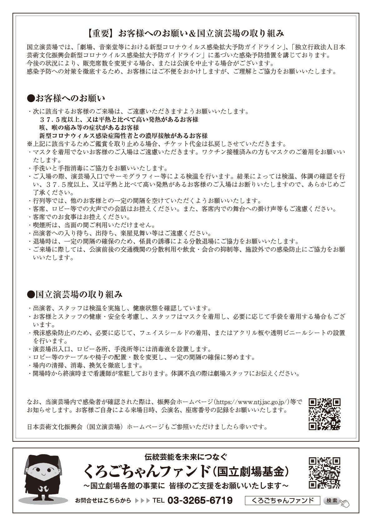 なお、最新の情報は下記の国立劇場チケットセンターへお問い合わせください。