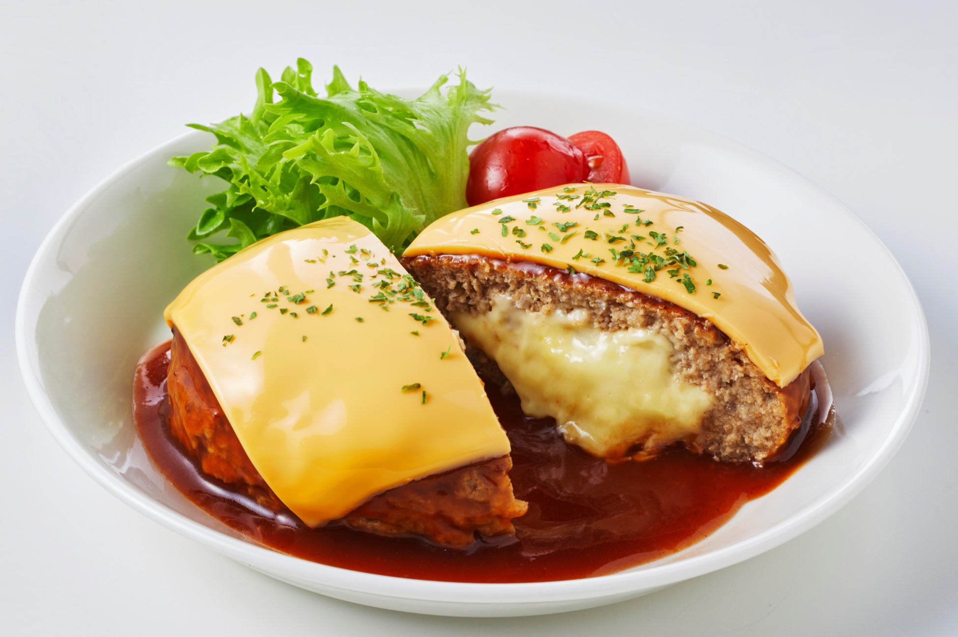 「販売終了後もお問合せがたくさんありました。肉の旨みを味わう事ができるハンバーグの中に、4種をブレンドしたチーズがたっぷり!」