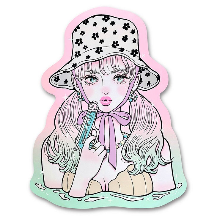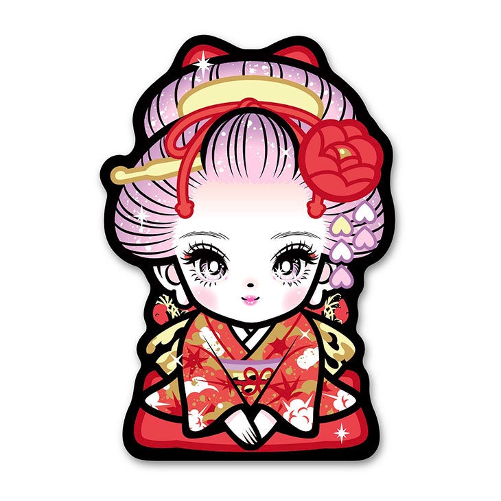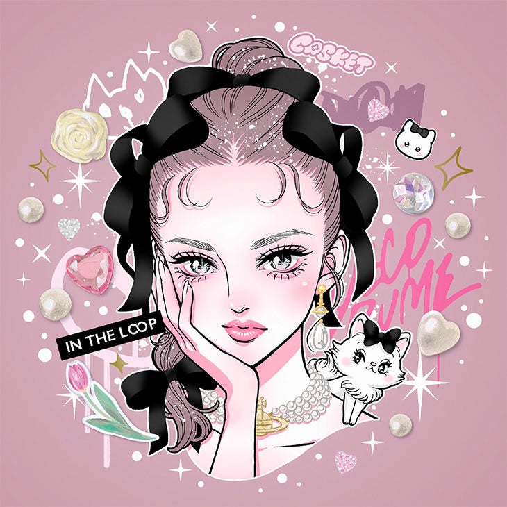 70年代SF少女漫画をアイデアソースとした「RED EYES」や「ESP」シリーズ、浮世絵美人画のサンプリング、サンリオとのコラボシリーズ、日本のカワイイ文化を圧縮した「DECORUME」シリーズ、キラキラマークに抽象化した「GINGIRAGIN」シリーズなど、それぞれのパーソナリティーを桜花するときめきにあふれたジェンダーワールドを余す所なく表現しています。今回の個展は音楽アルバムで言うところのベスト盤となる個展です。