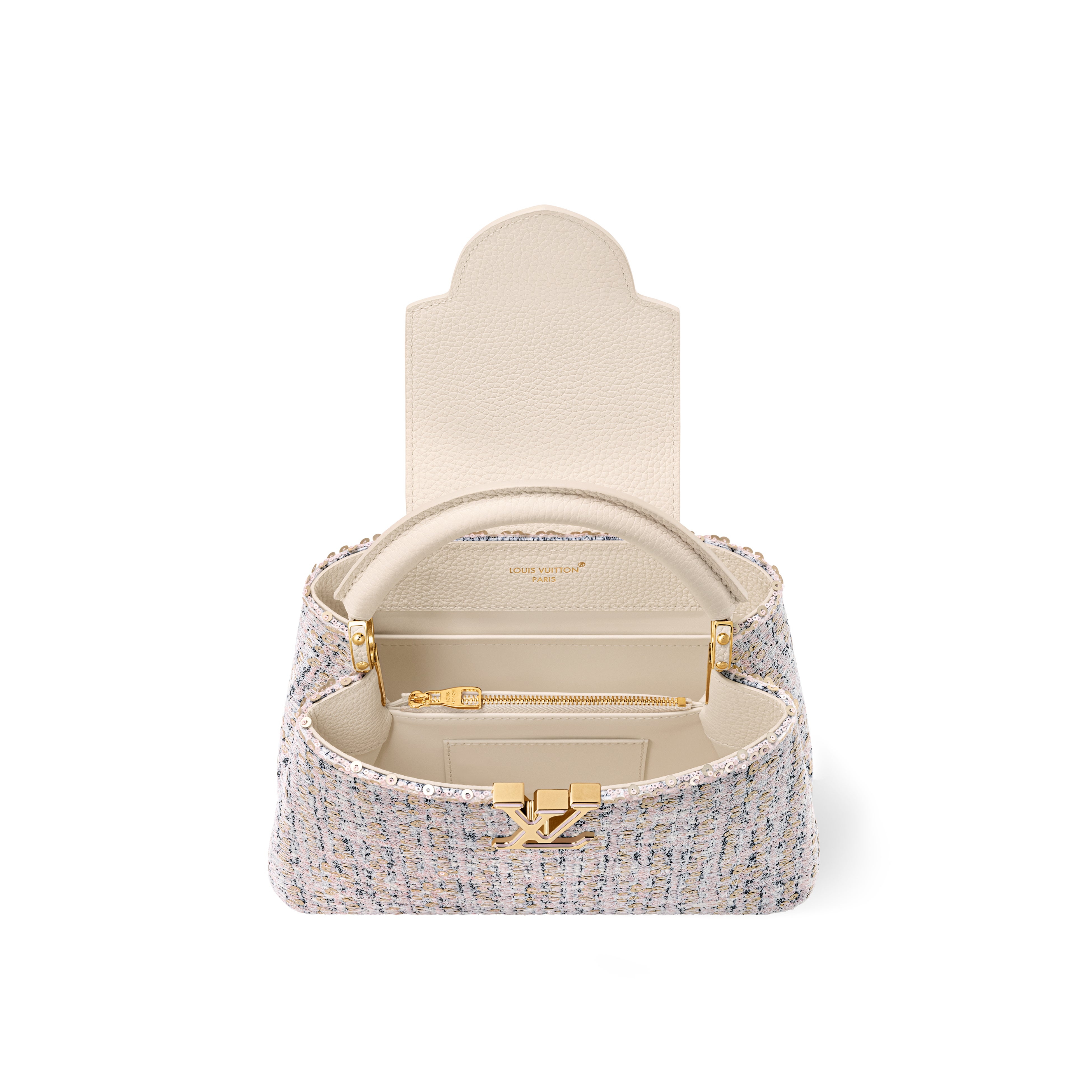 ルイ·ヴィトンは、精緻に織り上げ、スパンコールを散りばめたツイードに、シルバーカラーのメタルパーツが洗練された印象を添える、アイコンバッグ「カプシーヌ」の新作を発売しました。