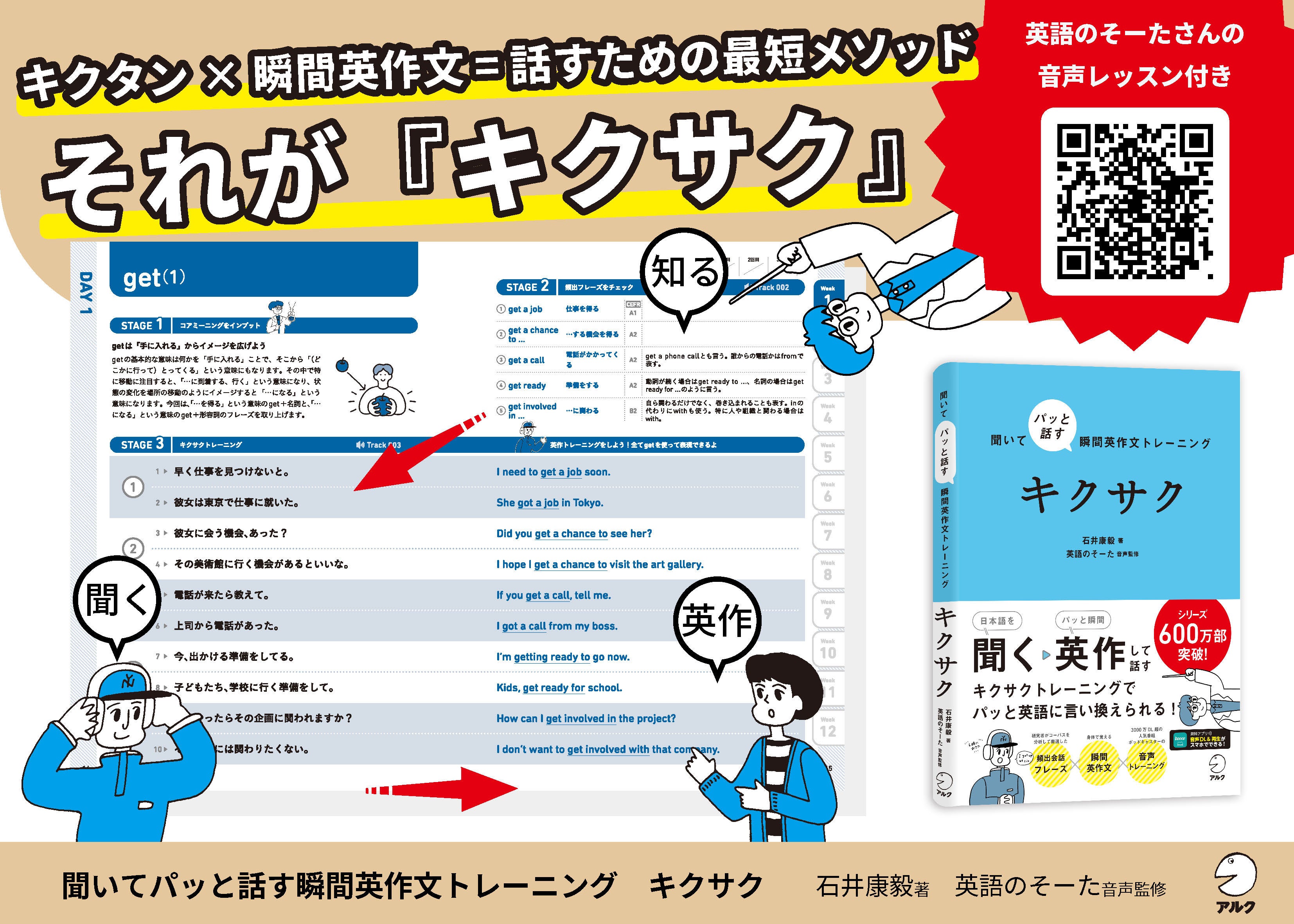 株式会社アルク(東京都品川区 代表取締役社長:田中 伸明、以下アルク)より、新刊書籍『聞いてパッと話す瞬間英作文トレーニング キクサク』のご案内を申し上げます。