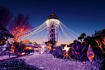 広大な土地と起伏に富んだ地形を生かしたスケール感抜群のイルミネーションが人気。14回目を迎える今期は「すみっコぐらし」とコラボした、世界初の「すみっコぐらしイルミネーション」を開催。青い光彩が視界を埋め尽くす「光の海」や、全長250mの「虹のリフト」に乗って光の虹の上を空中散歩するなど、空から眺める体験型イルミネーションが充実。