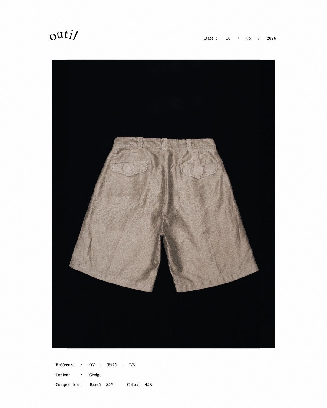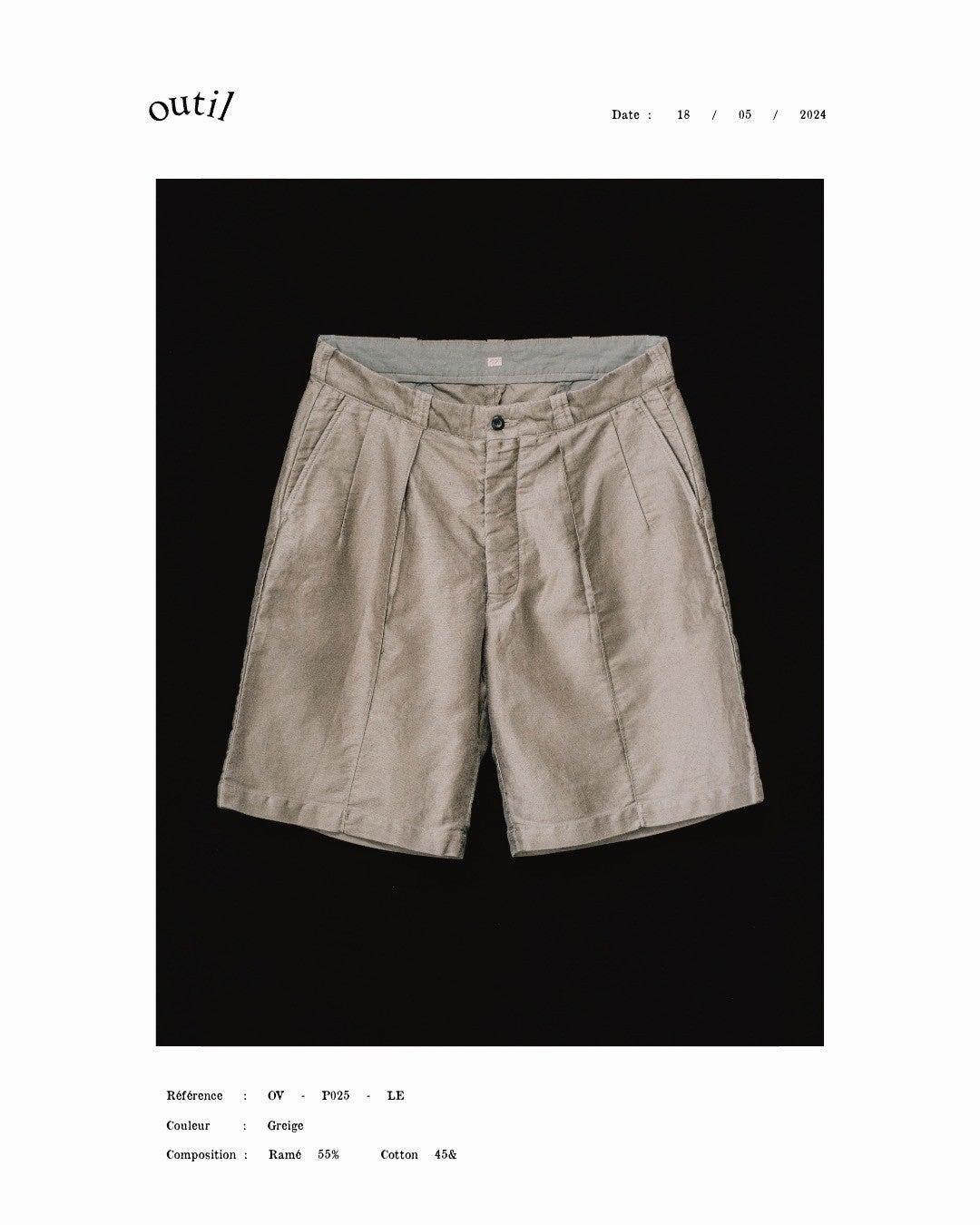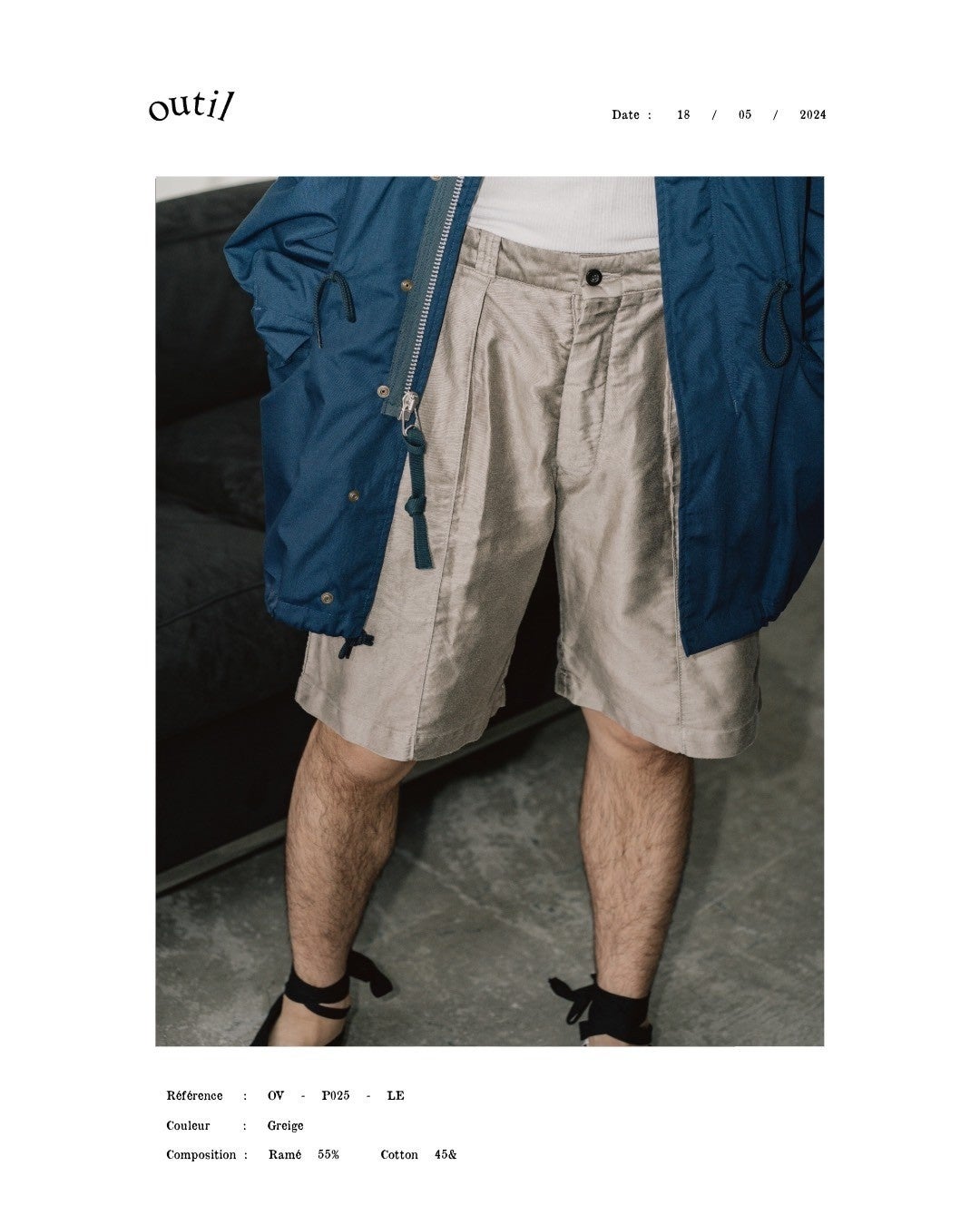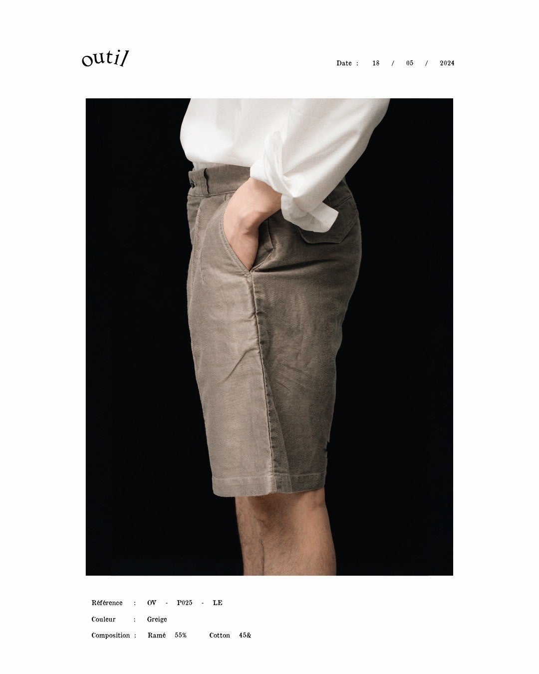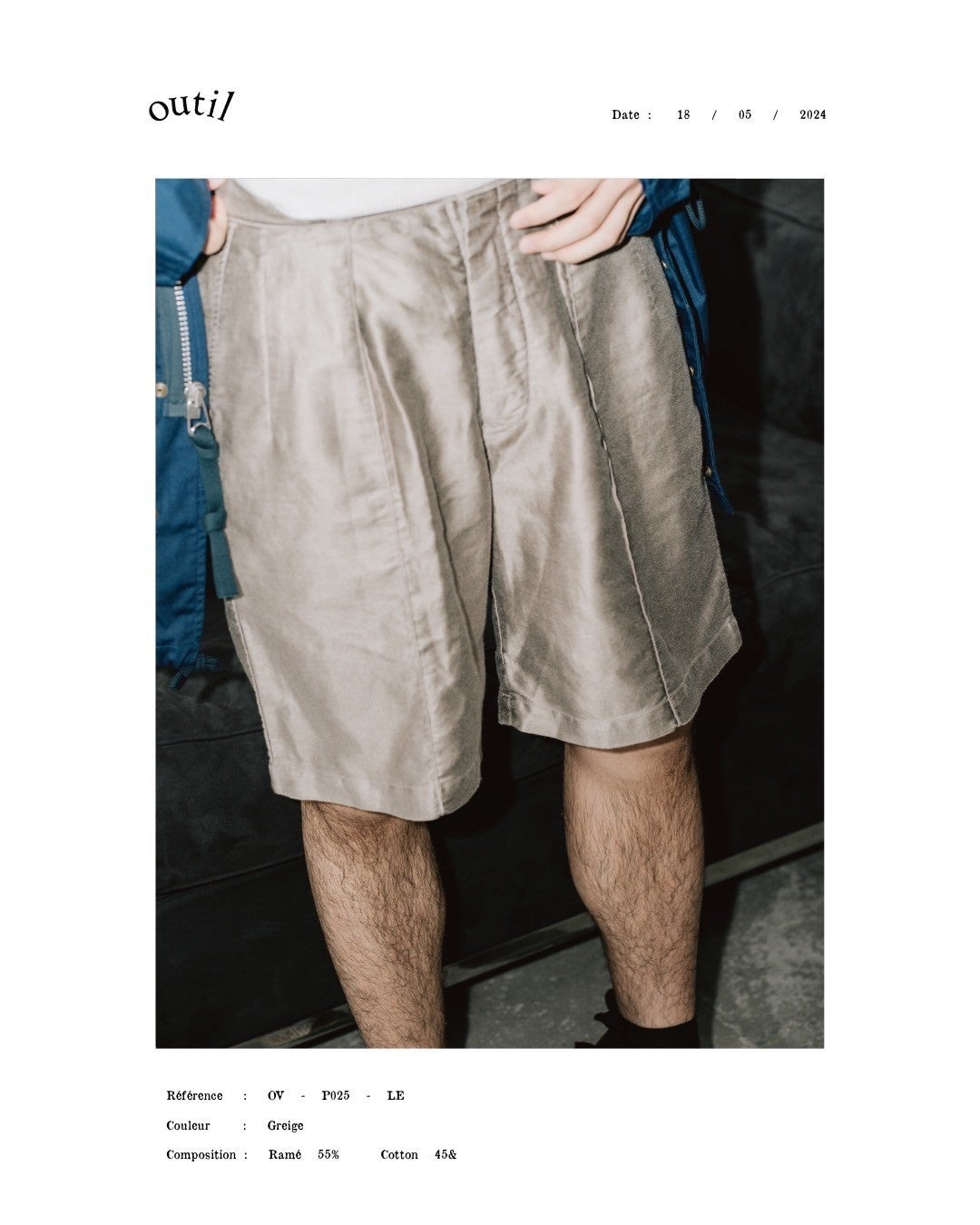そんな生地を、全く異なるルーツのアイテムに採用した。デザイナー・宇多氏は私物としてアメリカのヴィンテージウェアを多く所有している。打ち合わせの中で、1950年代につくられた"14212"というチノショーツが浮上した。ゆとりのある太めのシルエットに、センタークリースが入った特徴的なデザイン。その"14212"をモデルに、生地をモールスキンに置き換え、フランスとアメリカの二面性を持つショーツを制作した。カジュアルでありながら、どこか上品でドレッシーな空気を放つショーツ。手に取る人の嗜好でスタイリングの幅が広がる。フレンチワークを代表する生地で作られたアメリカのミリタリーショーツ。この機会にぜひお試しください。発売は5月18日(土)です。