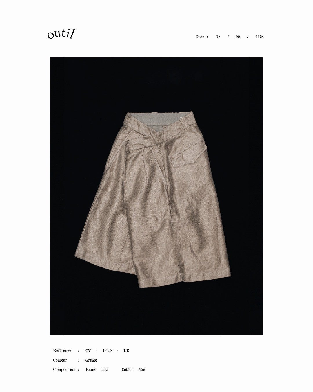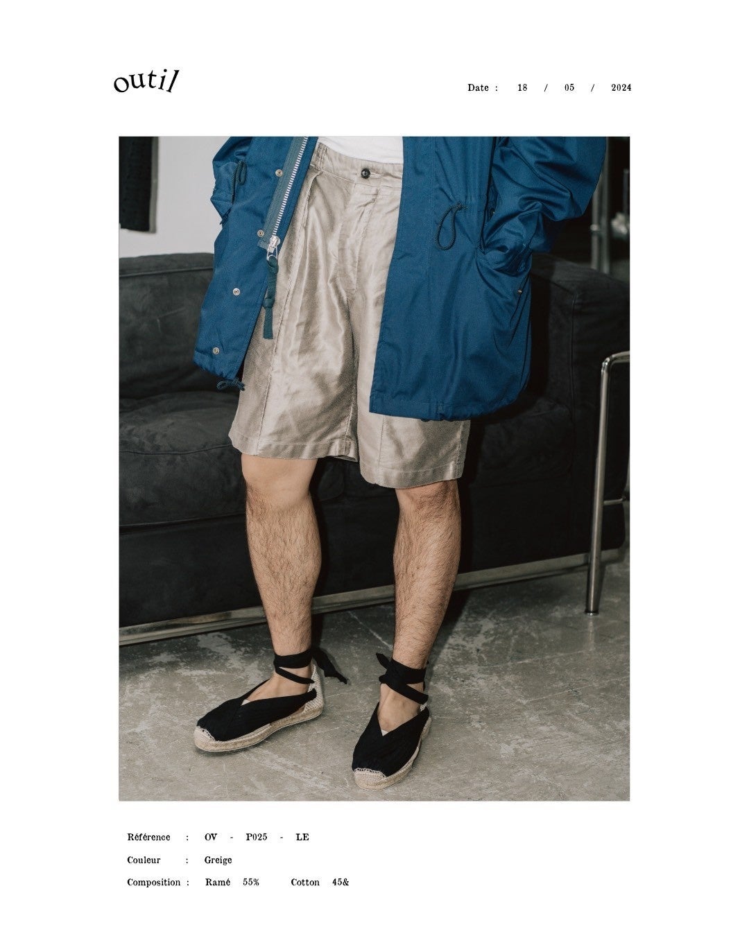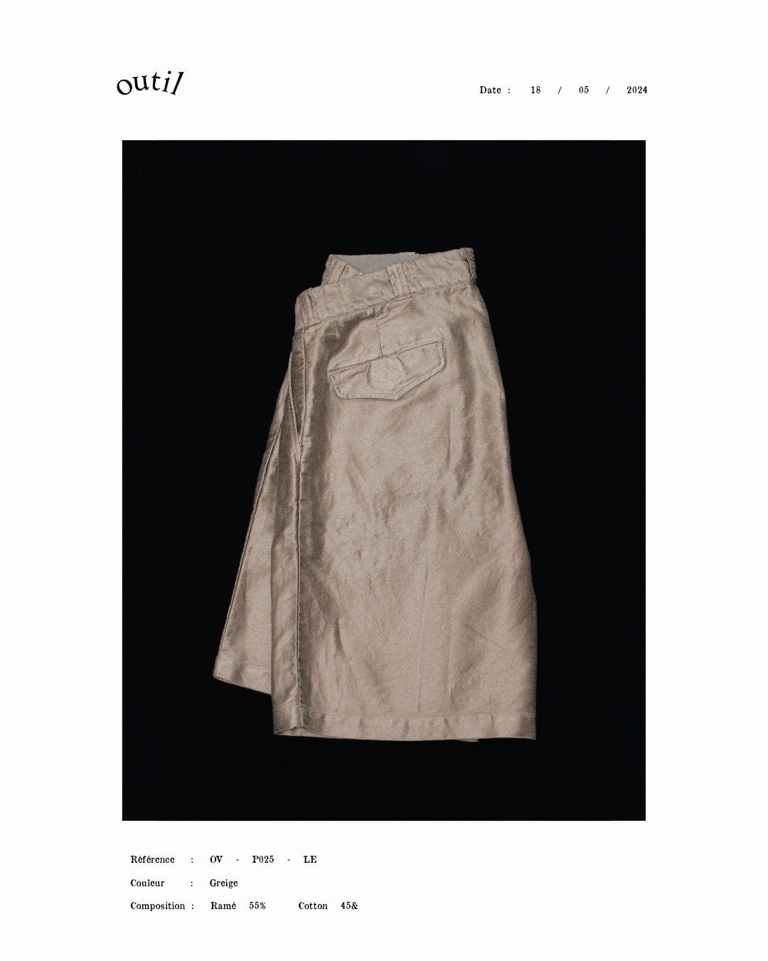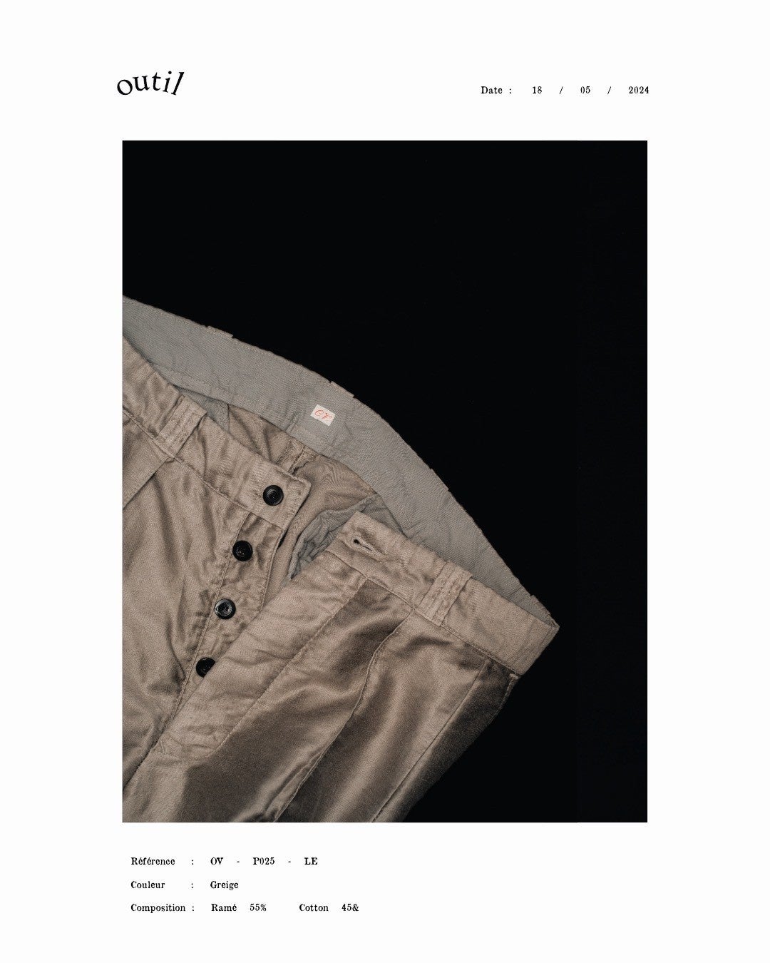 自社で研究・開発を行い、フランスの伝統的な生地を元に現代の生産背景の中でリファインし再構築する。そんな実験と実践の中で生まれたのが、オリジナルのラミーとコットンの混紡で織り上げたライトモールスキン。ヴィンテージの空気を纏いながら、軽く、美しい。