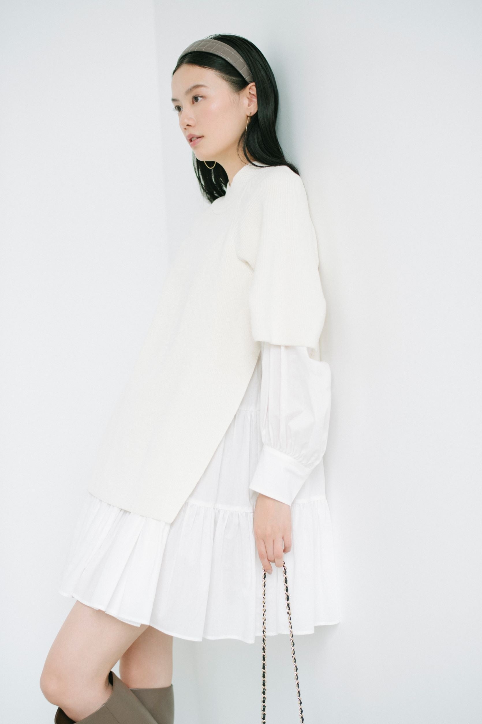 抜け感のあるスキッパーニットのディテールを落とし込んだ、トレンド感溢れるミニワンピース。