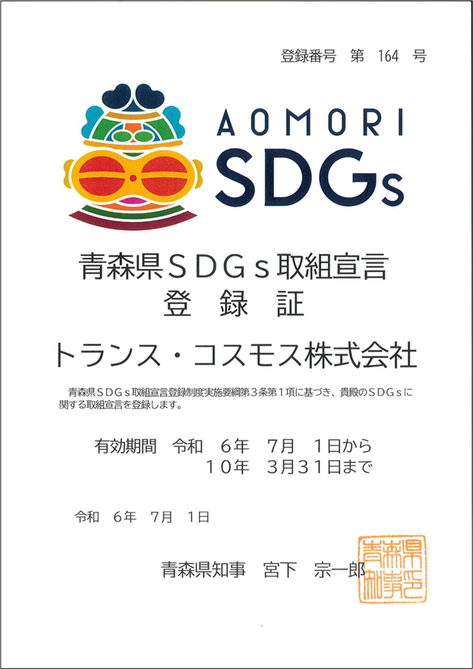 トランスコスモスは青森県において、オペレーション拠点である「CXスクエア青森」を通じて多くの雇用を生み出しています。青森県に拠点を置く企業として「持続可能な社会」「多様な人材が活躍できる社会」に賛同し、このたびの事業者登録に至りました。