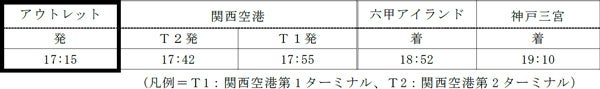 (1)神戸三宮発→アウトレット着便(関西空港交通の運行)