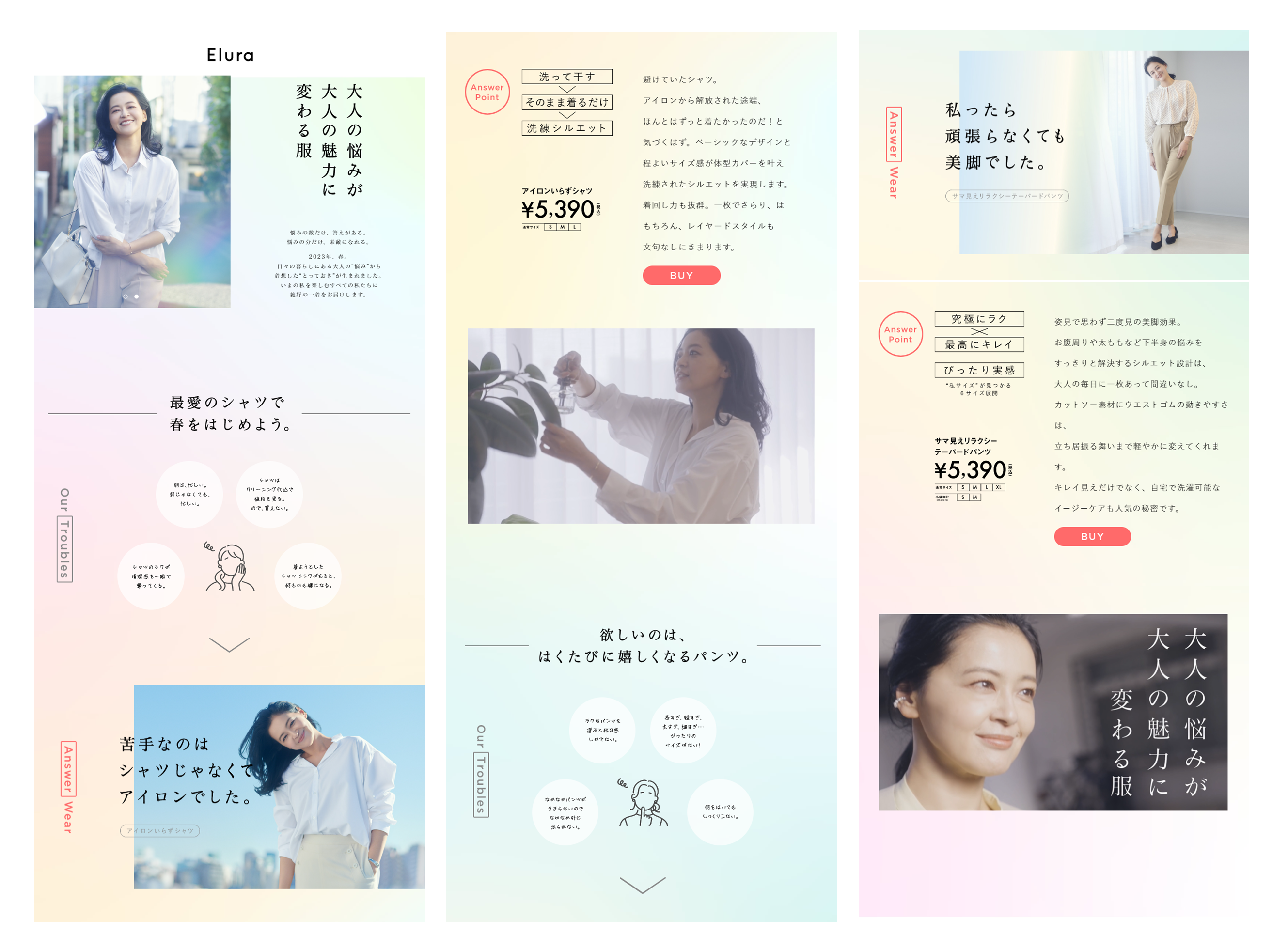 また、同時に特設WEBコンテンツ「Answer wear」をエルーラ公式WEBサイトで公開。エルーラが大人女性の様々なお悩みに、どう答えを出すかを紐解く特集です。