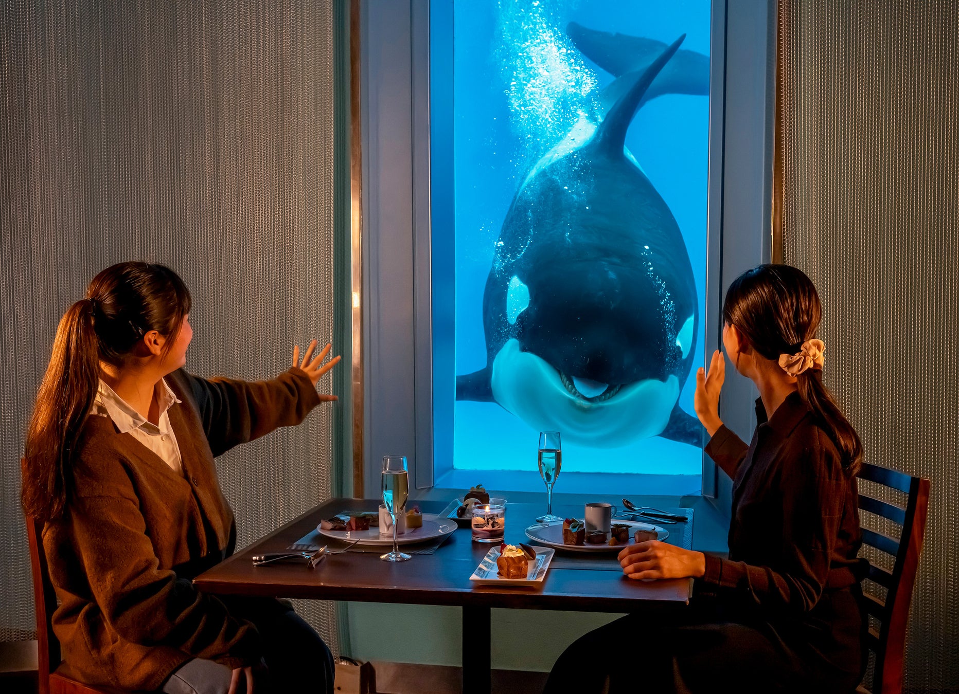 【充実した食と体験】関東で唯一シャチが見える水族館のレストランで特別なフルコースディナーを!