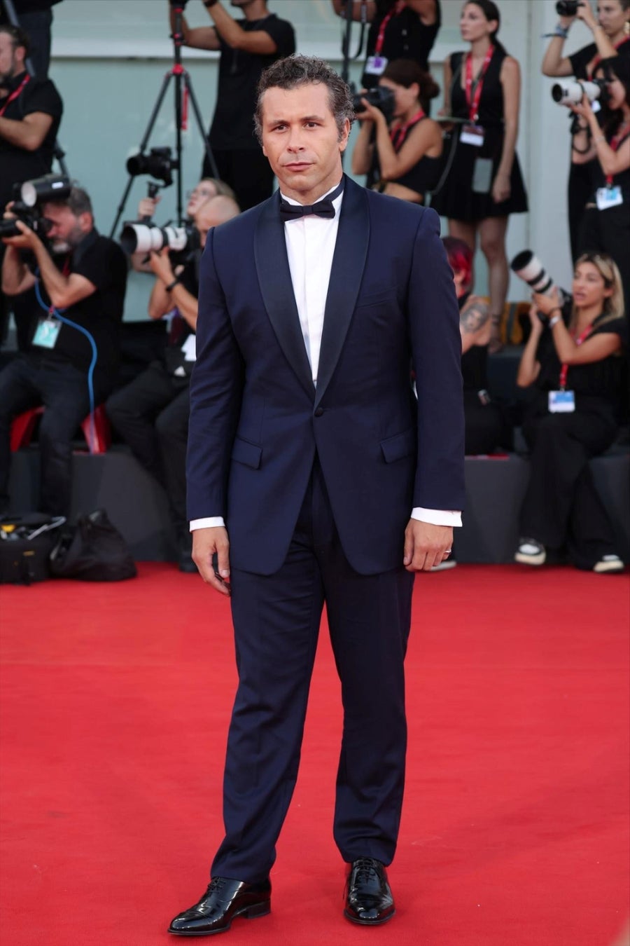 レオナルド・マルテーゼは、メンズ コレクションよりネイビーのピークドラペルタキシードに、クラシックなホワイトのコットンシャツ、ブラックのレザーダービーを合わせた装いでレッドカーペットに登場しました。