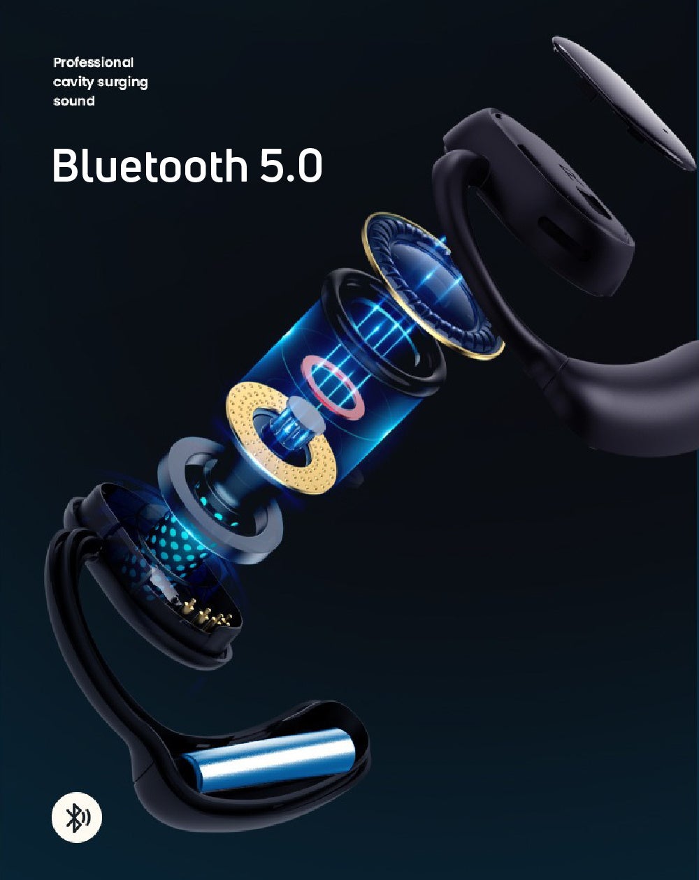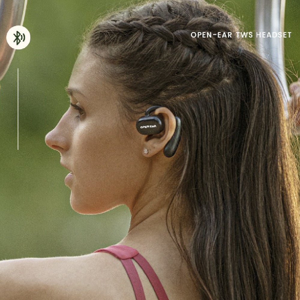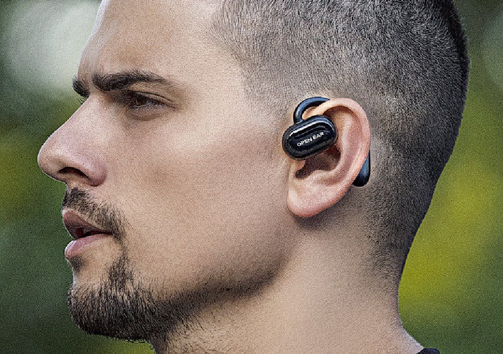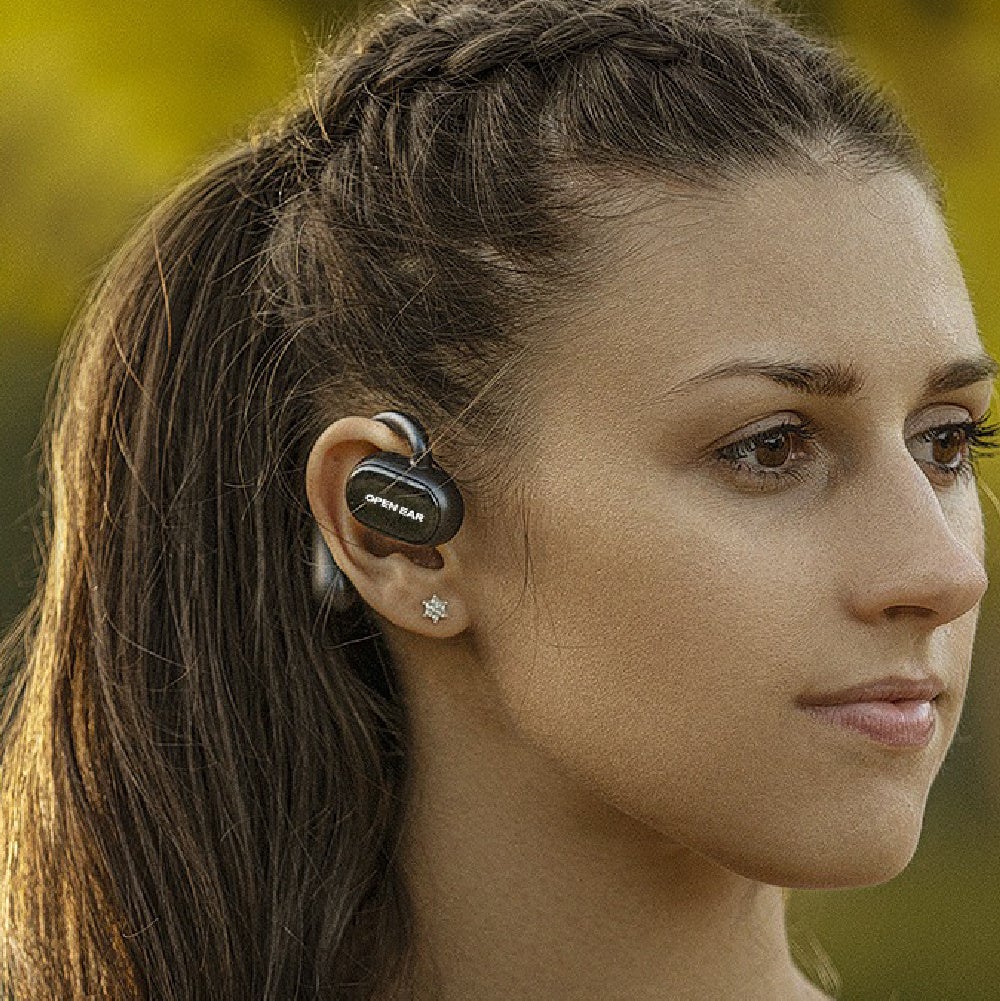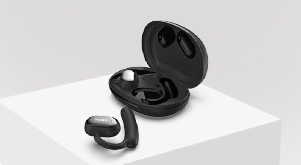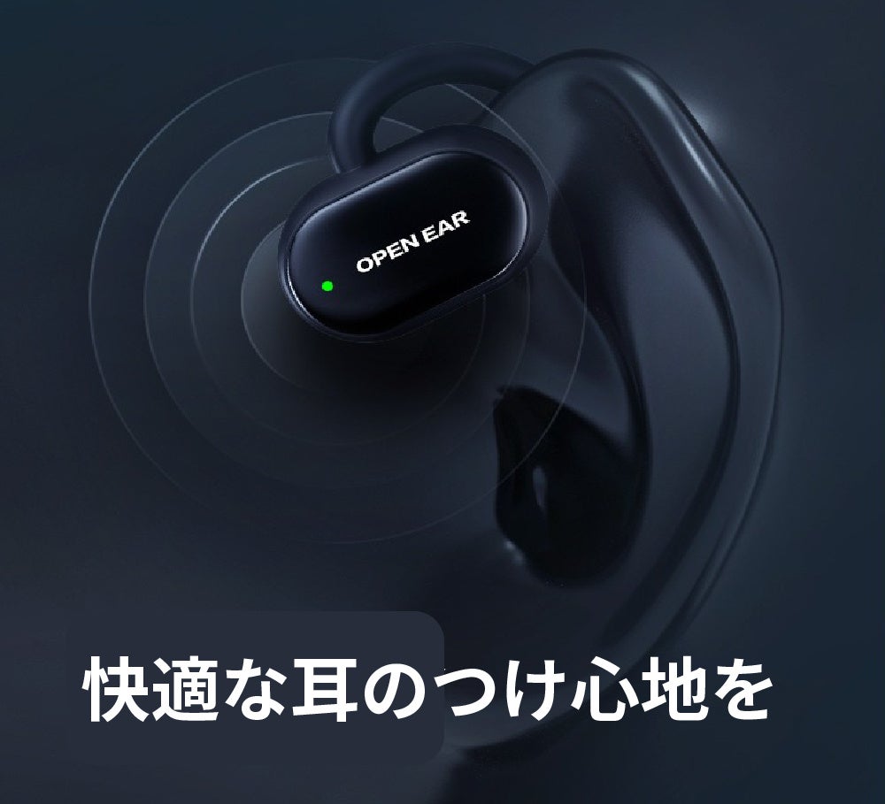 周囲の環境音を遮らないオープンイヤー型のワイヤレス骨伝導イヤホン
