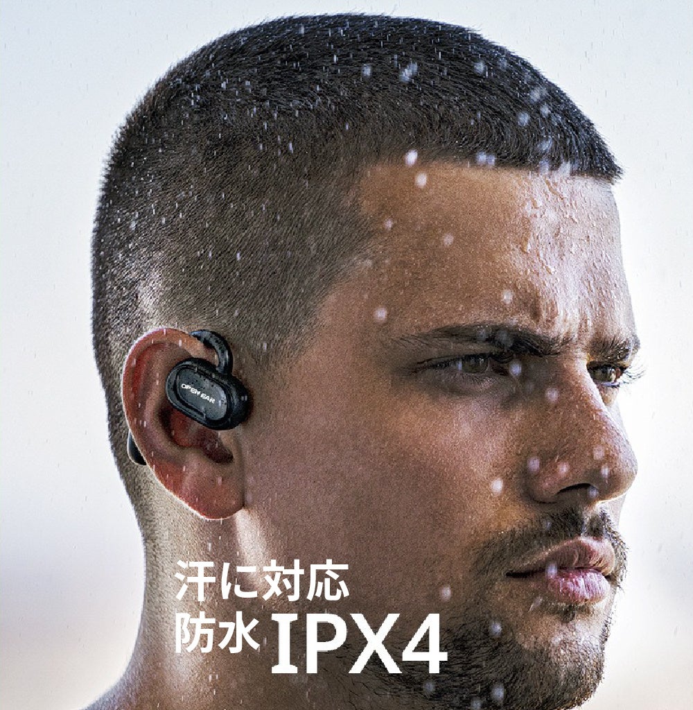 G-OpenEarは、汗や雨でも大丈夫な防水レベルIPX4に対応しています。