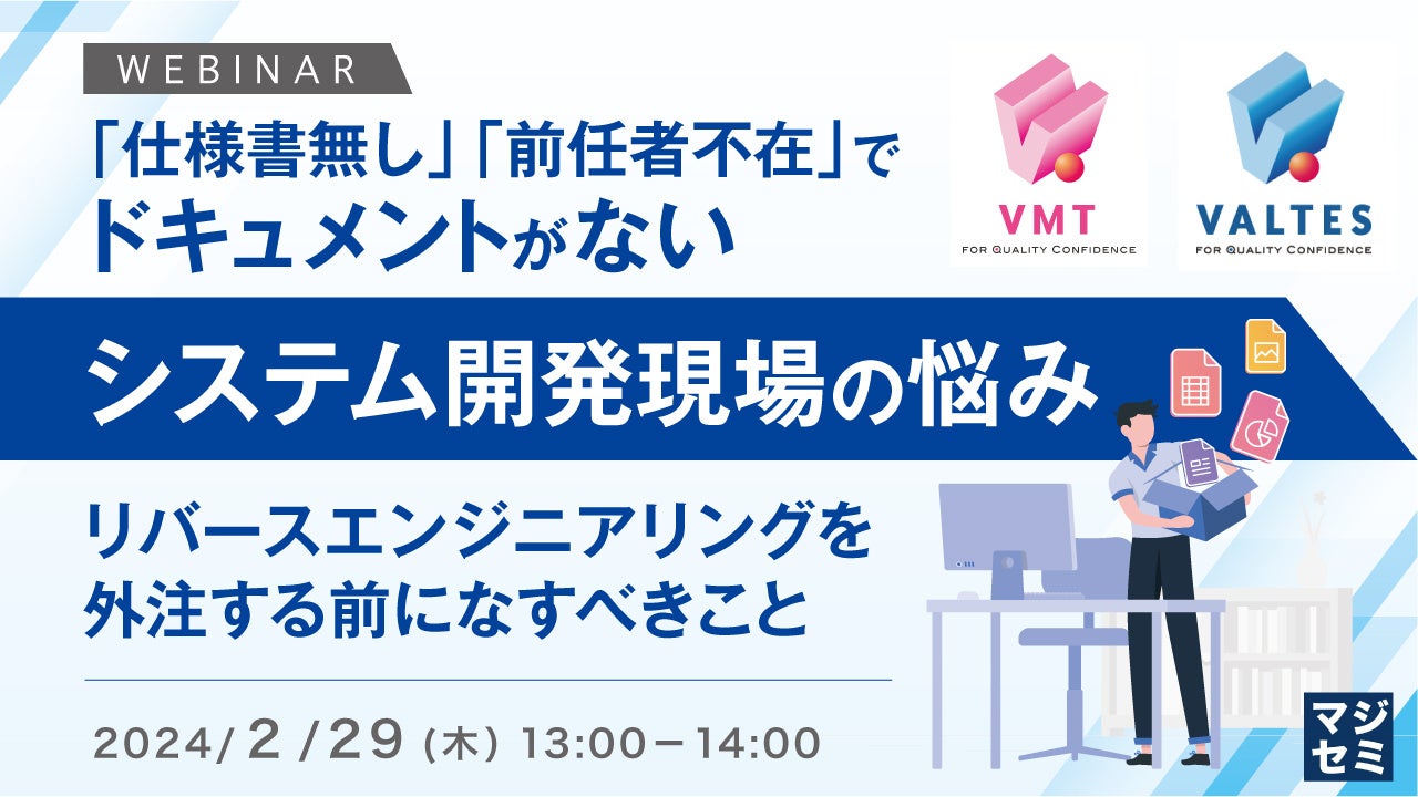 本セミナーでは、リバースエンジニアリングのポイントや、失敗しないための進め方、外注する前にやっておくべきこと等について解説します。「仕様書がない」「前任者がいない」などのブラックボックス化したシステム開発・保守・移管にお悩みの方は、ぜひご参加ください。