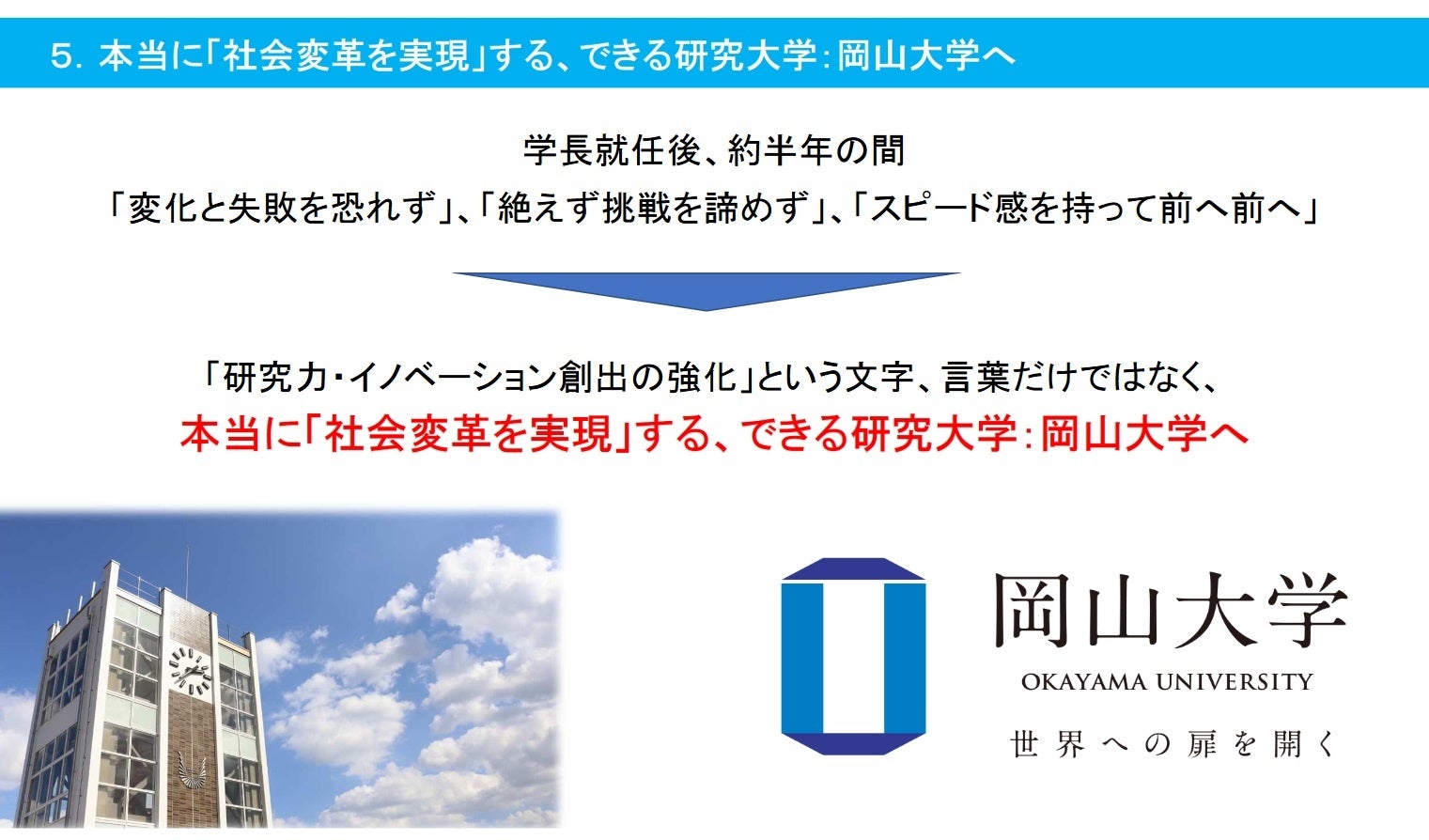 今後の岡山大学研究力・イノベーション創出強化実現会議の取り組み、そして岡山大学の絶え間ない挑戦にご期待ください。