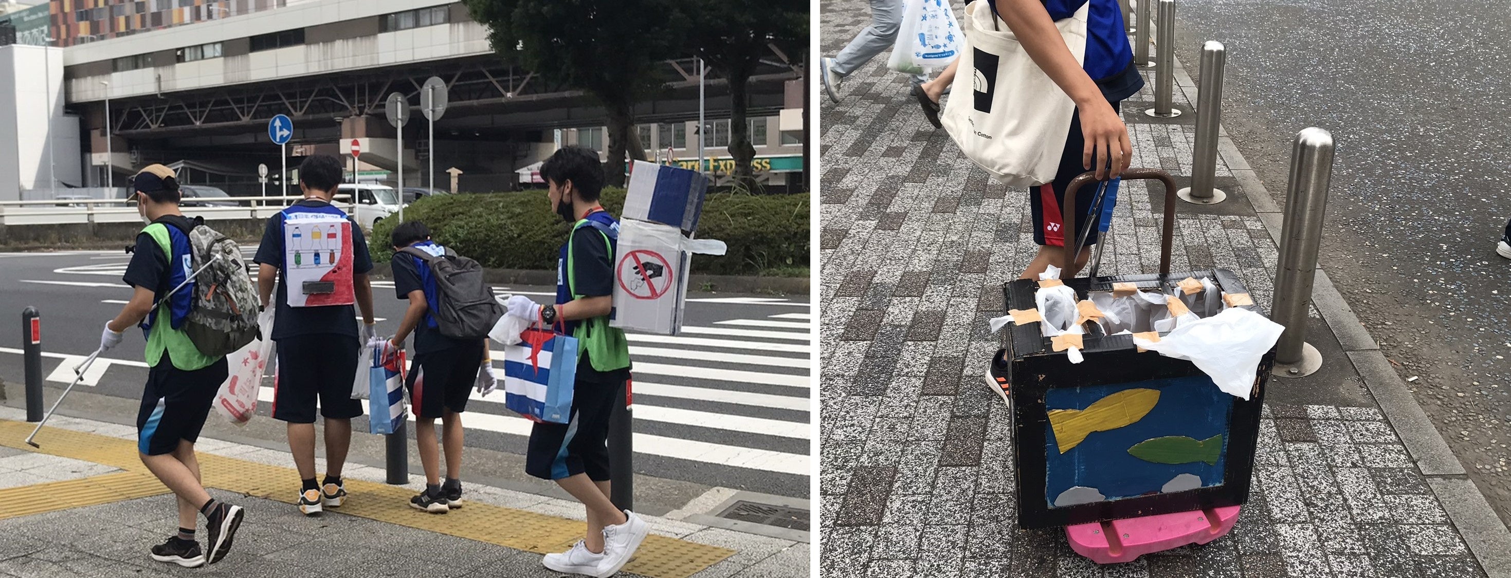 分別しながら集める背負子型や台車型、ポイ捨て禁止を訴えるデザインなどそれぞれ工夫を凝らしおりごみ拾いを楽しくかっこよく行えるよう17つのアイデアが光っていました。