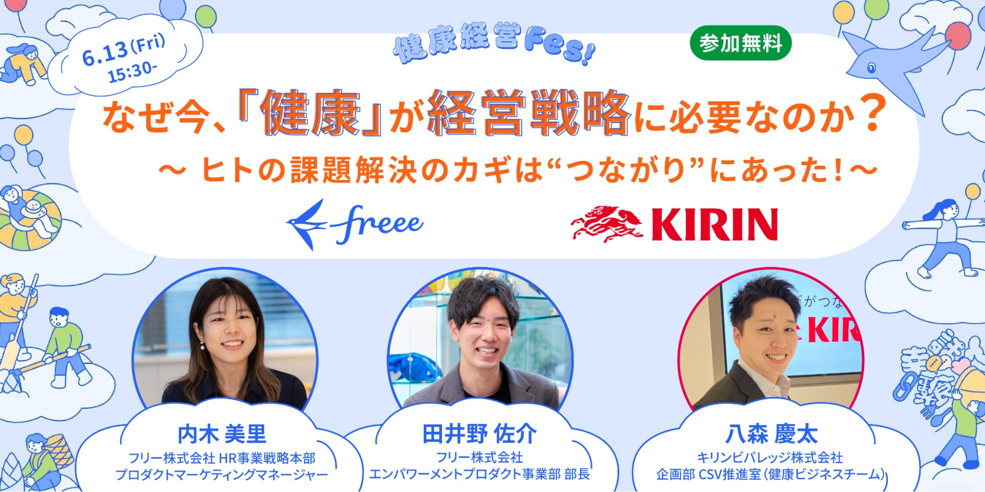 フリー株式会社(本社:東京都品川区、CEO:佐々木大輔、以下「freee」)は、6月13日(金)15時より、健康経営の取り組みにつながるきっかけを提供するイベント「健康経営Fes!」をfreee本社にて開催します。