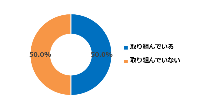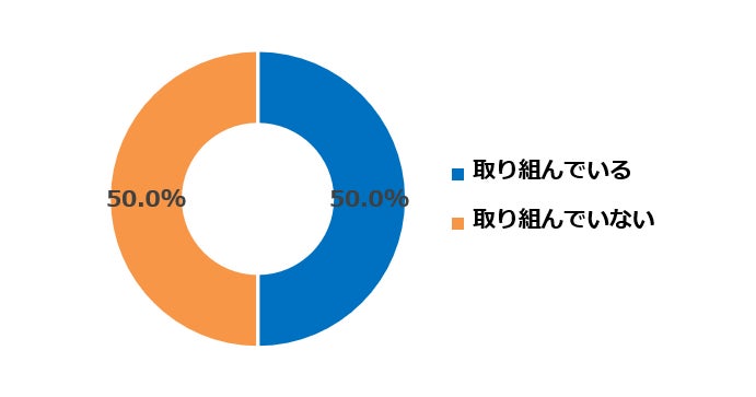 従業員が自身の健康面で気になっていることは、「運動不足」が最多で39.9%。次いで「ストレス」が35.2%、「肥満」が24.2%となり「特に気になることはない」を除くと、約7割が何かしらの健康面に不安を抱えていることが分かる。一方で、企業側が行っている従業員の健康課題解決のための取り組みについて、50.0%の企業が「取り組んでいない」と回答。従業員の多くが健康課題を抱えている反面、課題解決に取り組む企業は多くない状況がうかがえる。【図1、2】
