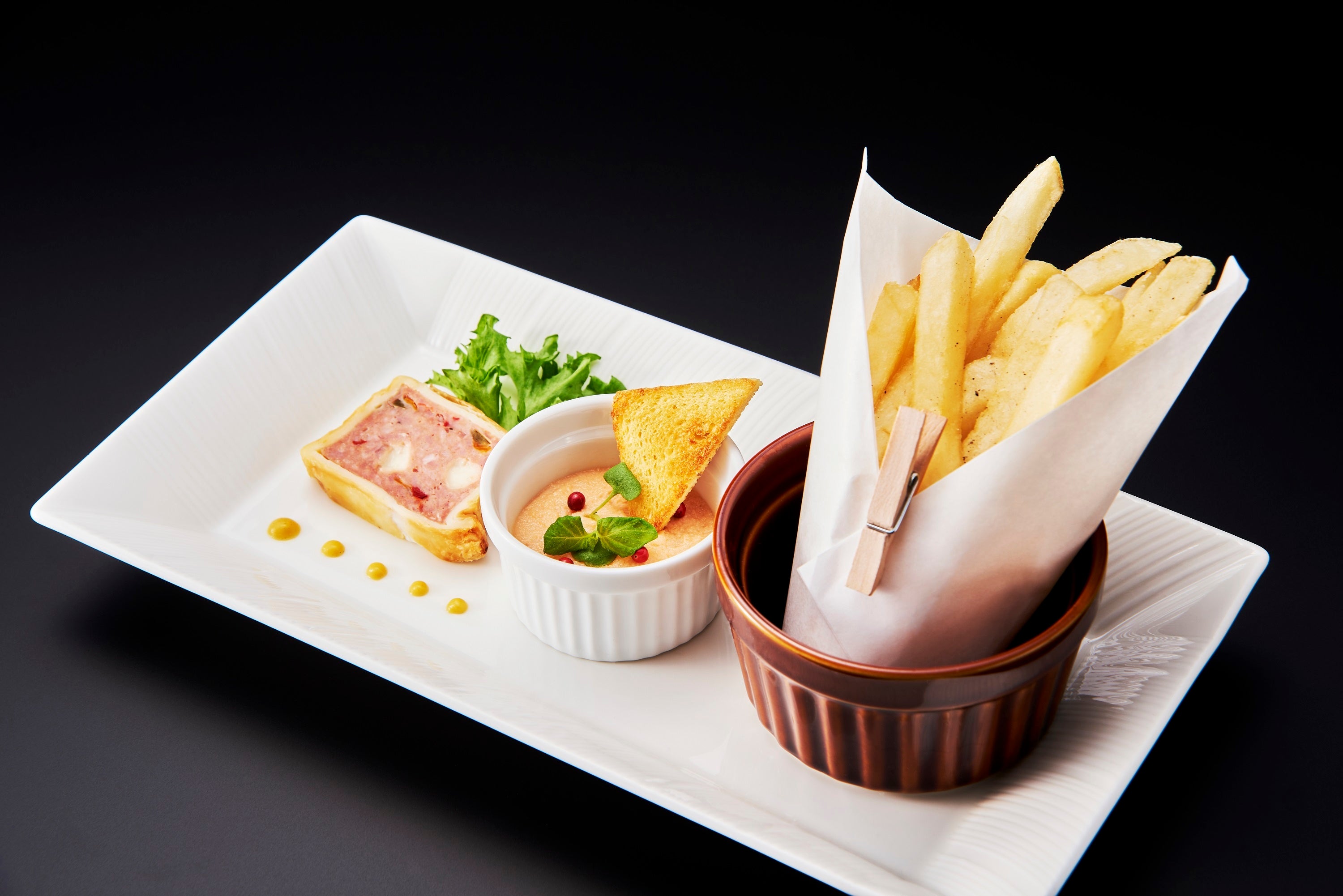 スモークサーモンサラダ添え、冷製ローストポーク、フライドポテトトリュフ塩風味、スライダードッグ+ワイン、ビール、カクテル各種、ノンアルコールドリンク等約60種類