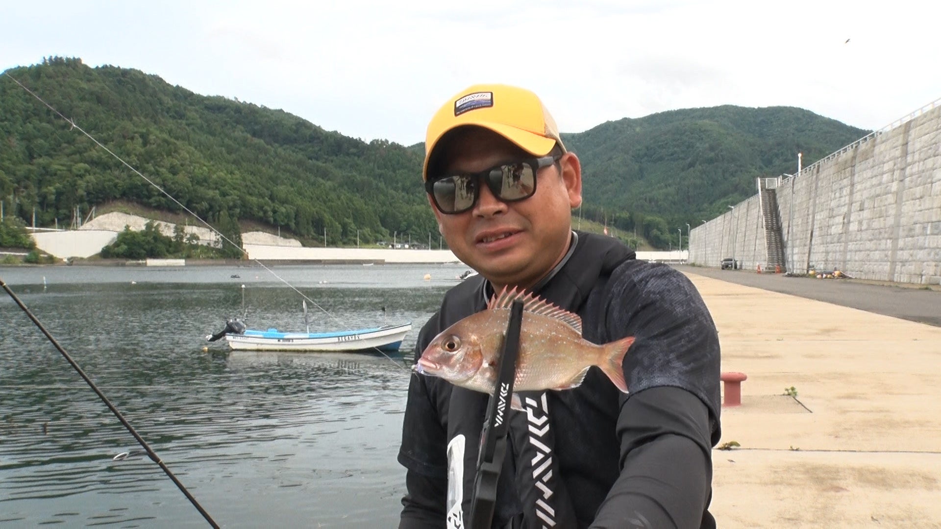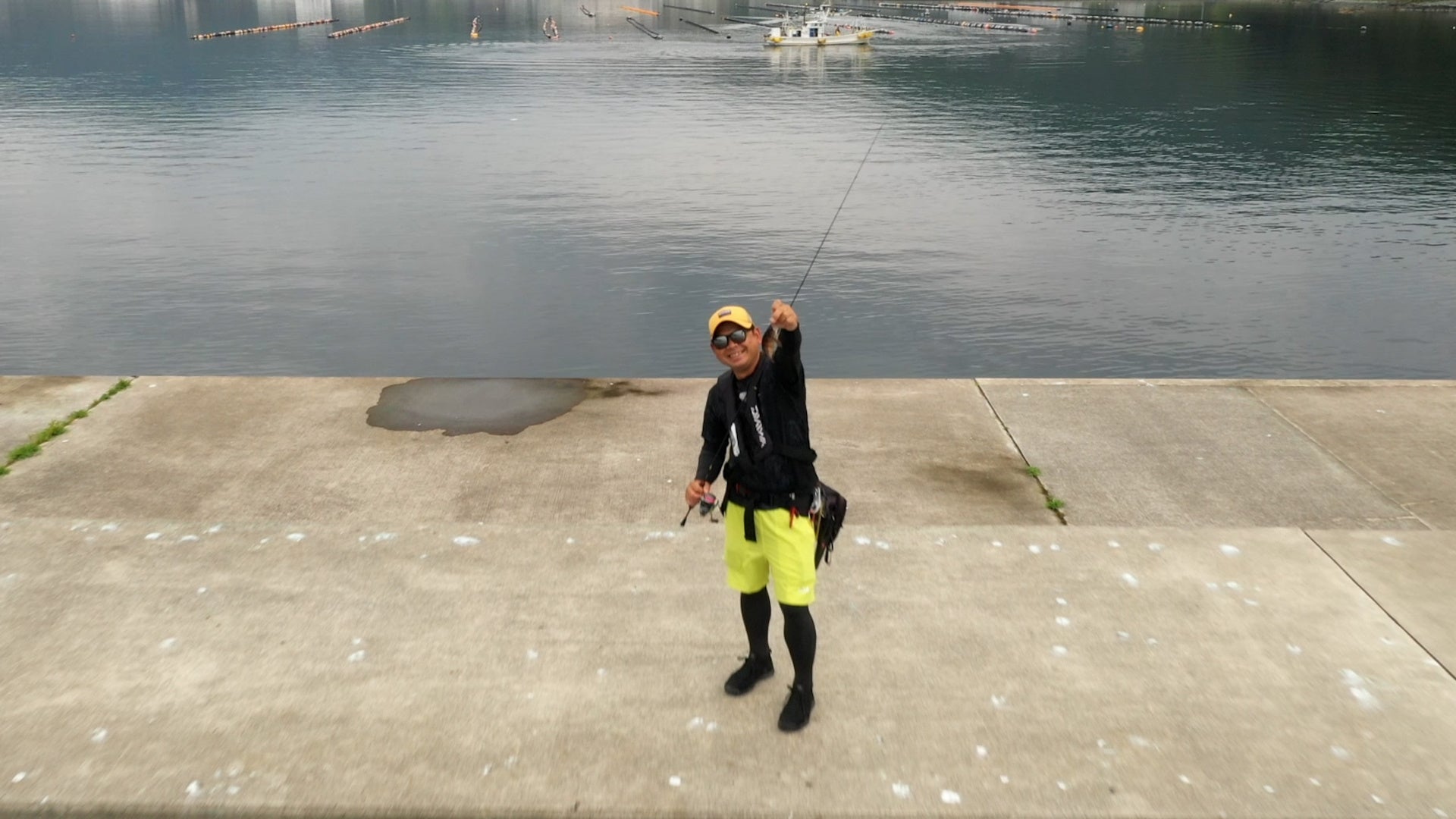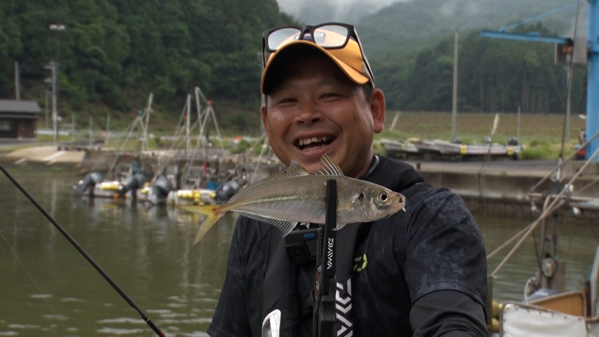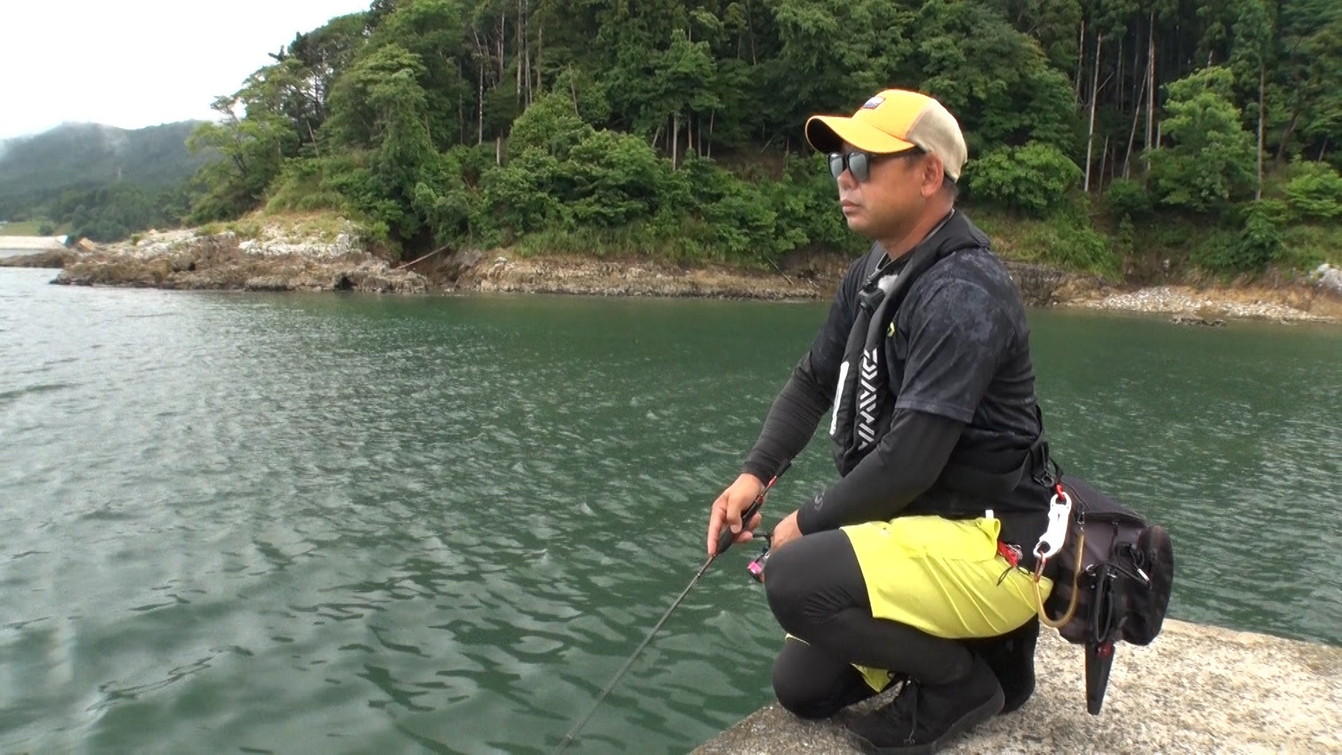 しかし、最初のポイントへ入ると数時間前まで降っていた雨の影響で濁りが強く、アジの魚影が目視できない。当初想定していた釣り方ができない中、アジがいそうなポイントをテンポよく探っていく渡邉。
