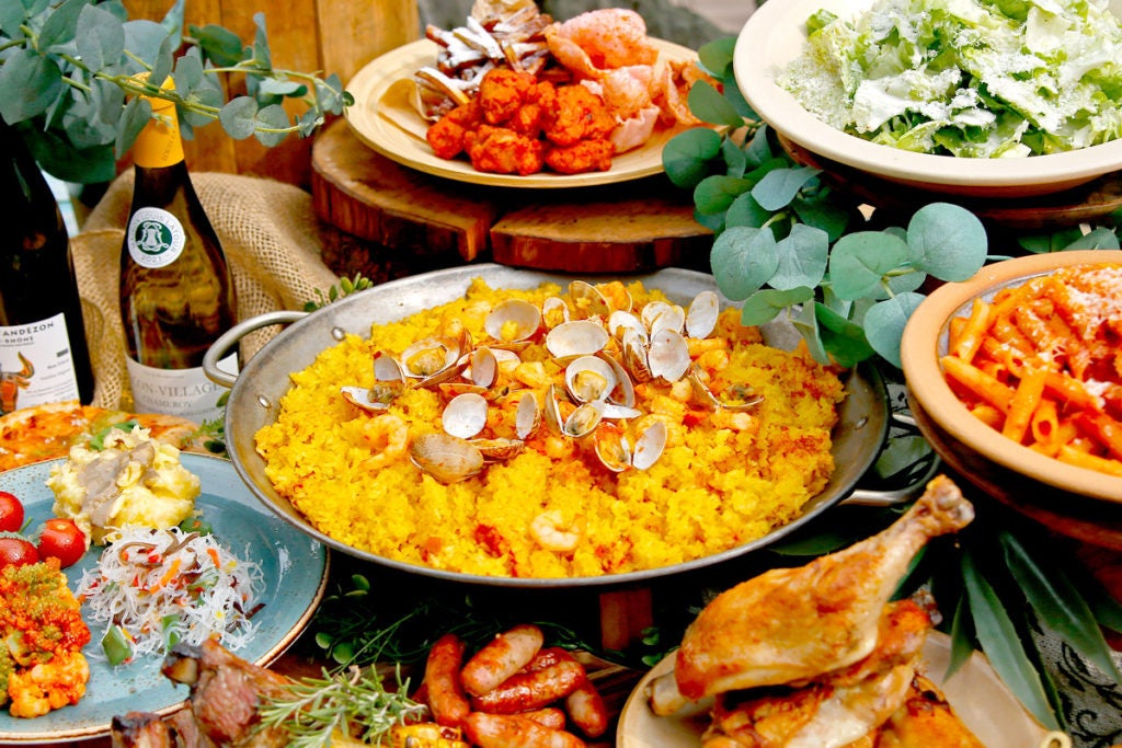 おつまみにぴったりなタパスに、彩り鮮やかなデリやスパイスを効かせたアテ、さらに目の前で仕上げる削りたてチーズのシーザーサラダなども登場。また、お酒がすすむフリットやヤンニョムチキンはもちろん、お腹を満たすピザやパスタ、〆にもぴったりなシーフードパエリアも食べ放題でご用意しております。食後のデザートには選べる自家製シロップのオリジナルかき氷を楽しんで。