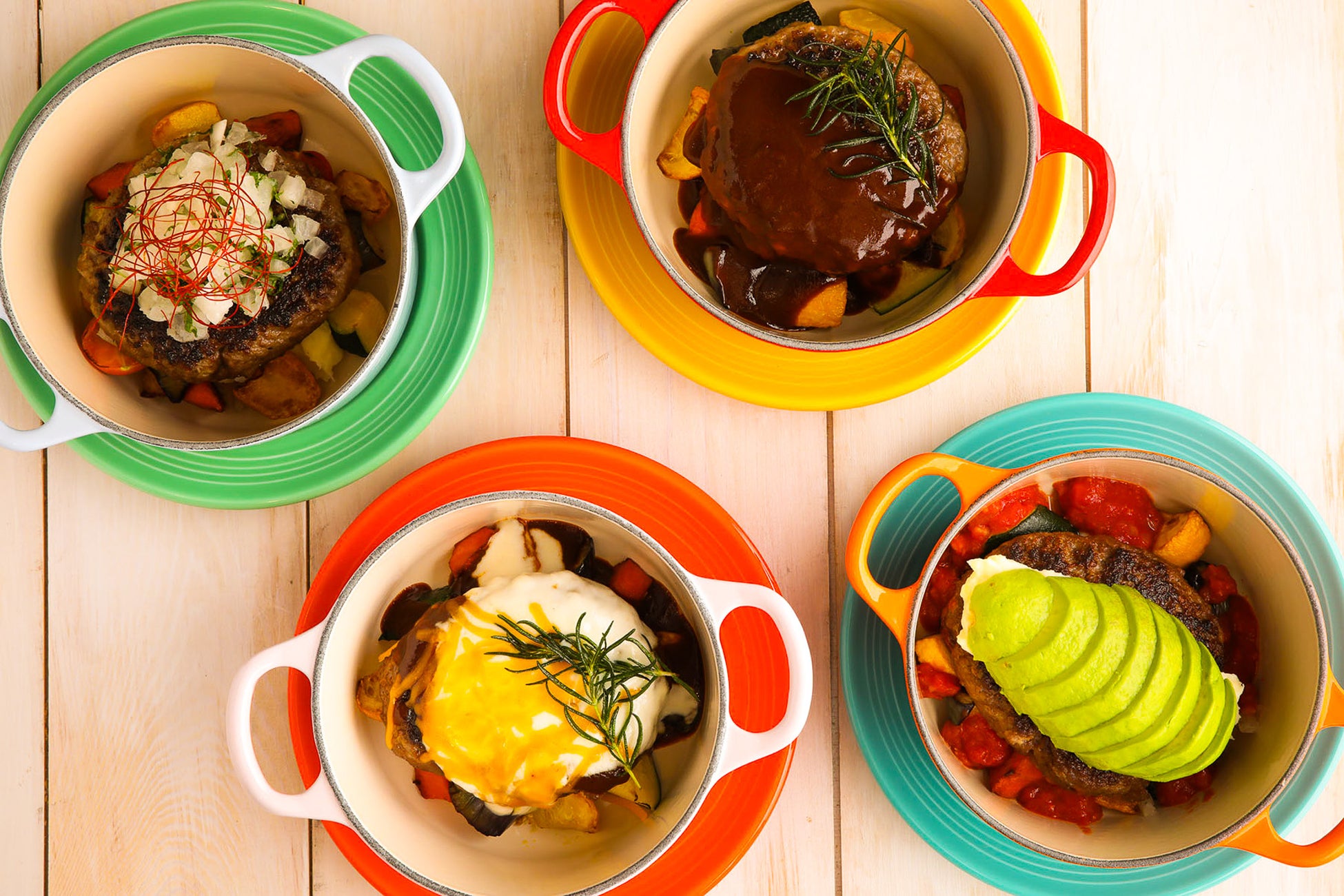 ハンバーグ (写真左上から 時計回り)
