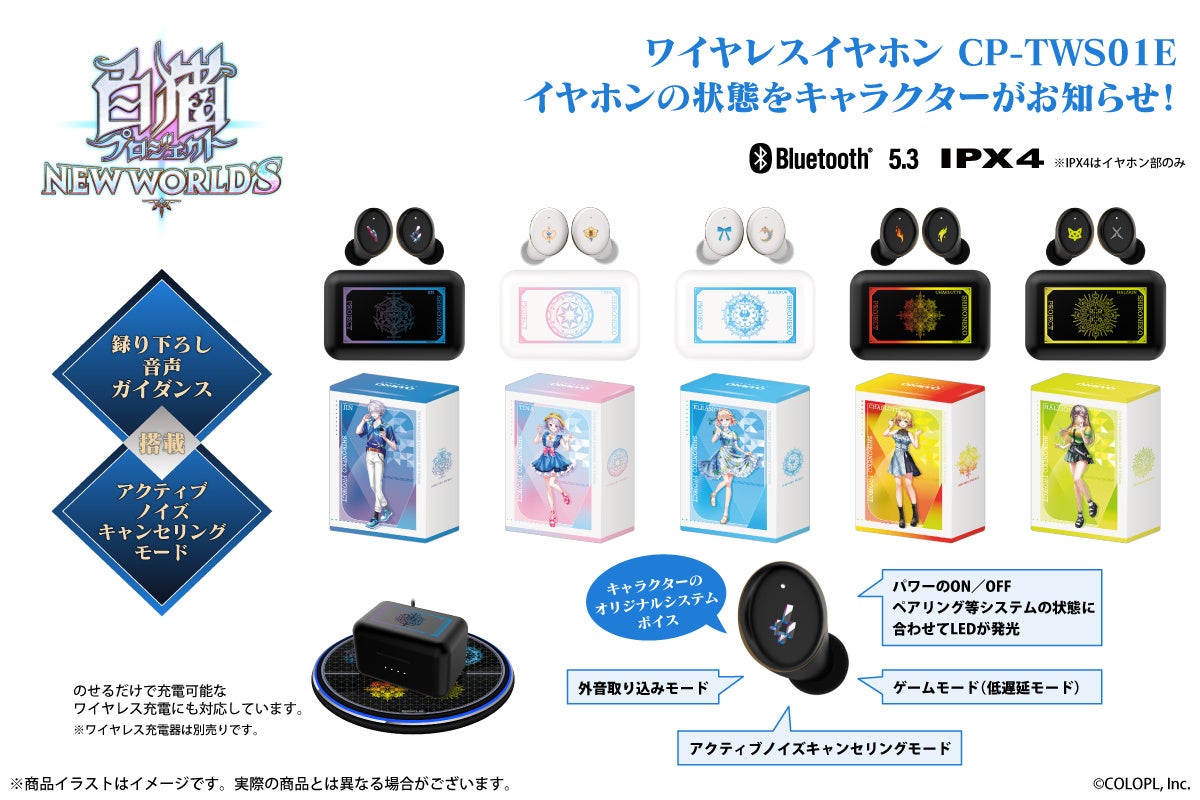 ジン、ティナ、エレノア、シャルロット、ハルジオンのワイヤレスイヤホンの受注を受け付けております。イヤホンには、今回のために録りおろした新規ボイスが搭載されております。