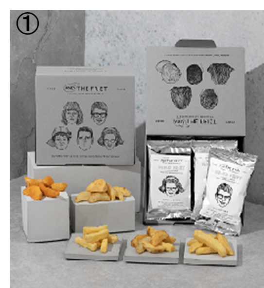 〈AND THE FRIET〉①ギフトボックス ミニ5個 25g✕5個 1,400円 ②北海道ベルギーミックス 90g 850円/1階 MAP②