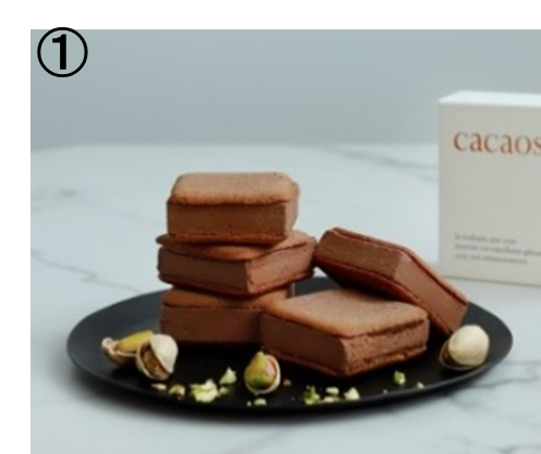 〈cacaosic〉①cacaosic pistachio(4個セット) 1,576円、(6個セット) 2,365円、(8個セット) 3,153円、②生チョコレート ミルク(9粒) 2,197円/地階 MAP③