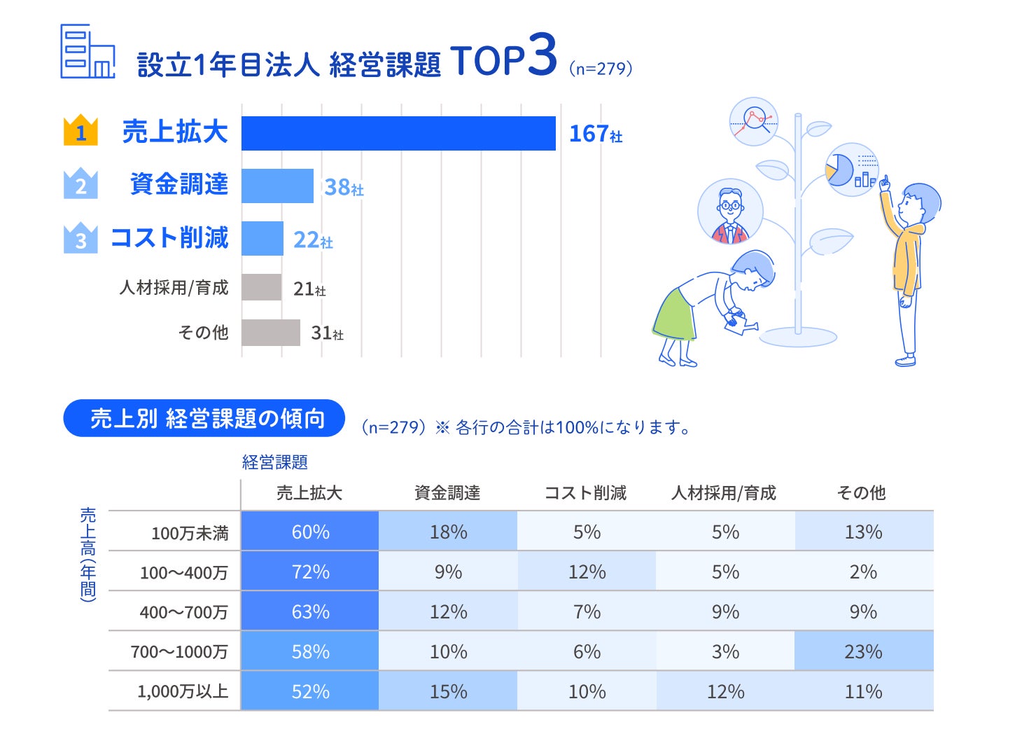 法人設立1年目の経営実態調査を公開、直面する経営課題の1位は「売上拡大」