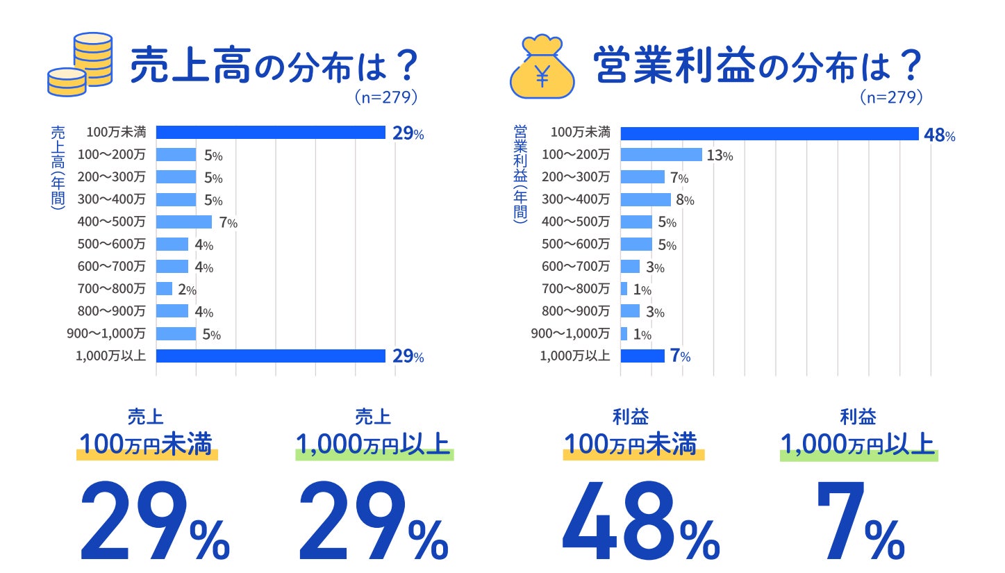 一方で、営業利益については「100万円未満」が48%と半数近くを占める結果となりました。しかし、「1,000万円以上」の営業利益を出している企業も7%おり、高い利益を出す企業も一定存在することもわかりました。