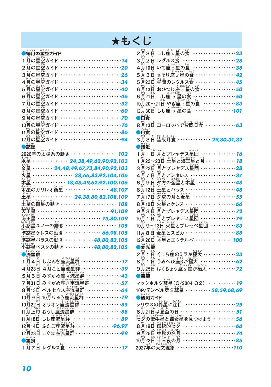 2026年に起こる天文現象をわかりやすく解説した星空観察のコンパクトサイズのガイドブック。