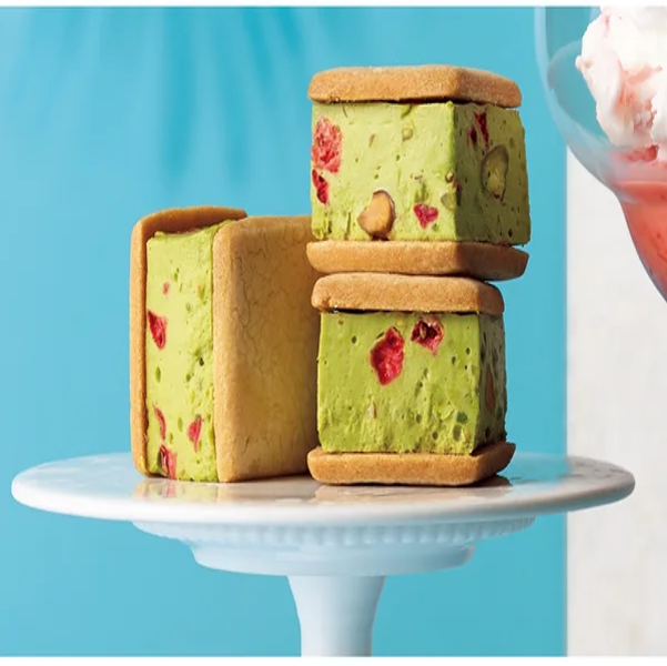 ピスタチオをふんだんに使ったイタリアンチーズケーキ「カッサータ」をサブレでサンド。