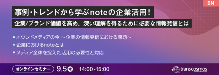 【トランスコスモスオンラインセミナー】事例・トレンドから学ぶnoteの企業活用!を9/5(木)に開催