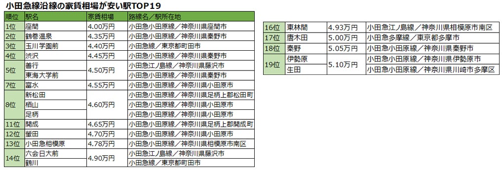 今回は「小田急線沿線、家賃相場が安い駅ランキング! 2022年版」を発表します。