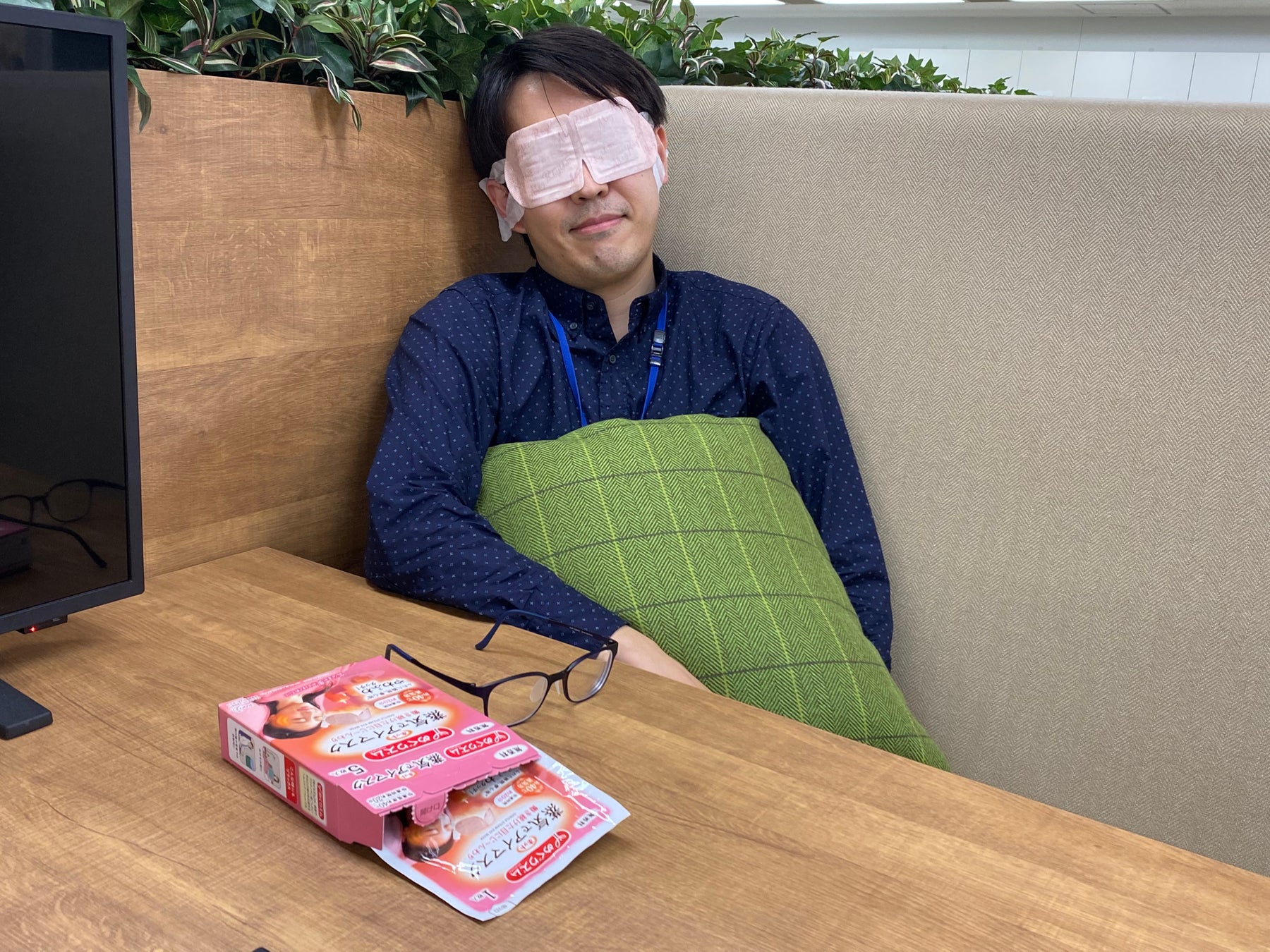 ◆ロッテ社内で花王「めぐりズム 蒸気でホットアイマスク」を使った『ちょこっとオフタイム』の様子