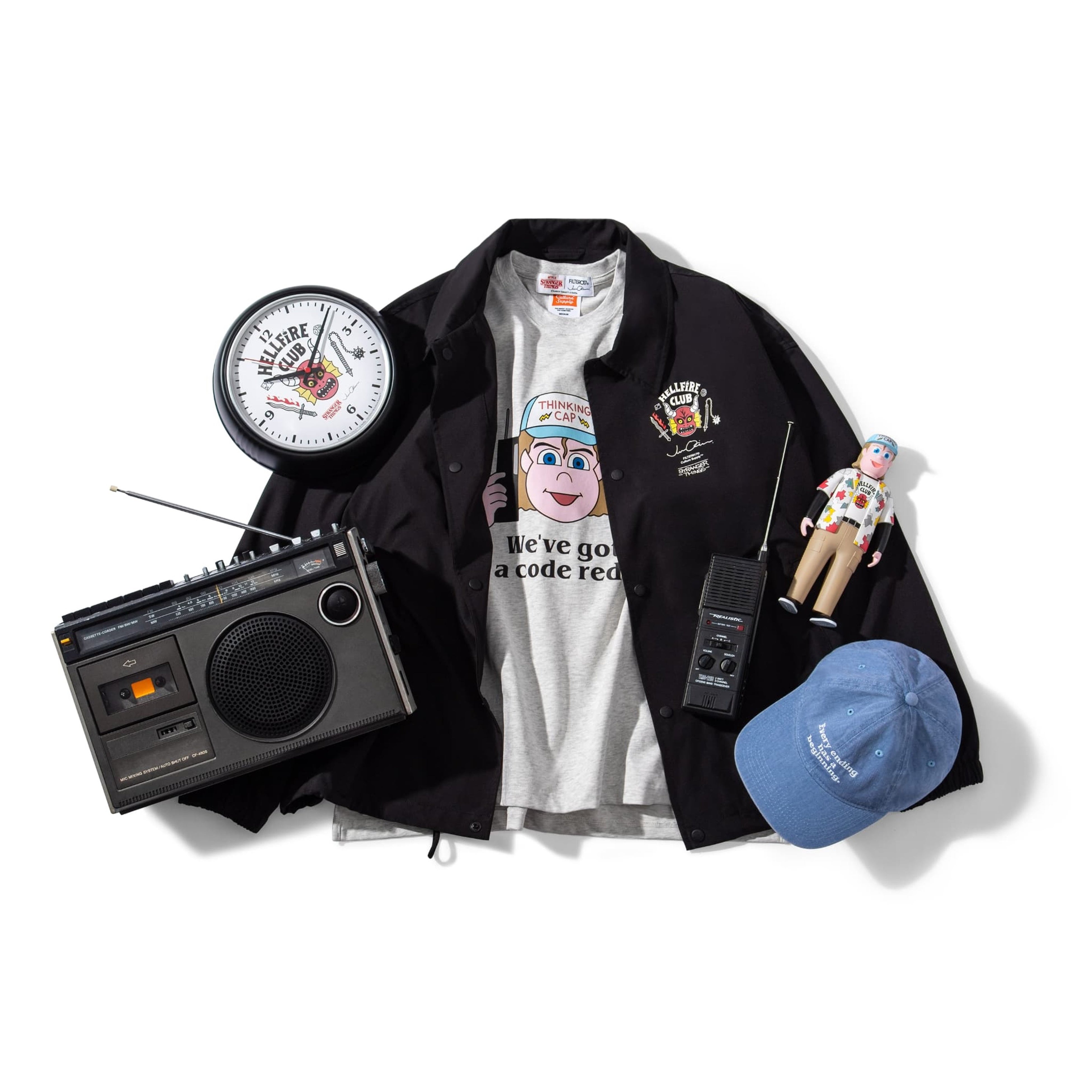 1980年代のアメリカを舞台にした『Stranger Things』の独特な世界観から着想を得て生まれた、フィギュアやパーカー、スタジャン、キャップ、トートバッグ、ピンバッジ、ステッカーなどが揃います。アーティスト・JUN OSONさんが描くユニークで親しみやすい表情のキャラクターたちは、友情や冒険といったドラマのテーマを軸に、現代のストリートカルチャーに自然に溶け込んでいきます。懐かしくて新しいスタイルをどうぞお楽しみください。